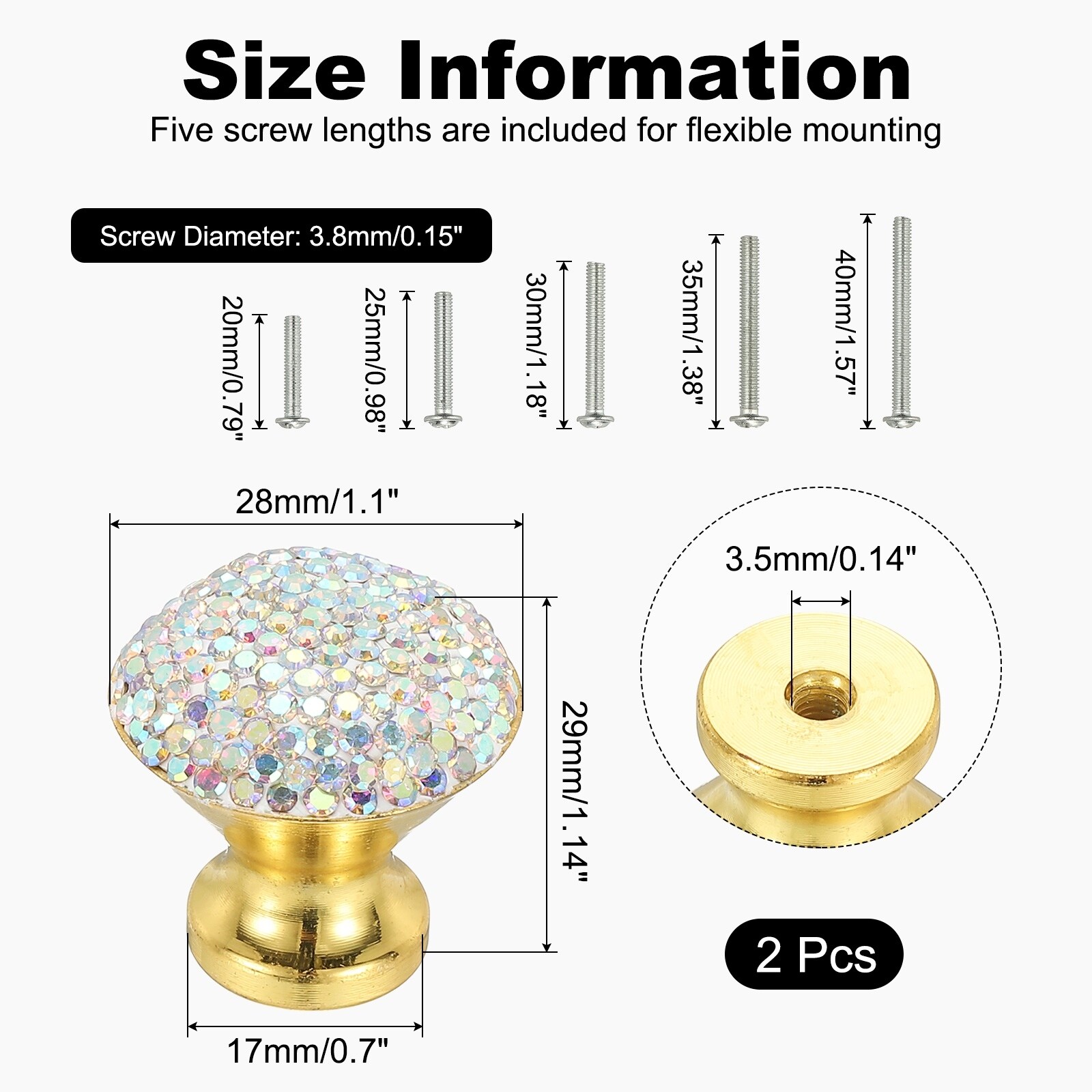 Drawer Knobs Bling Diamond Decoration Cabinet Knob, Round Rhinestones Pull Handle with Screws for Home, Office