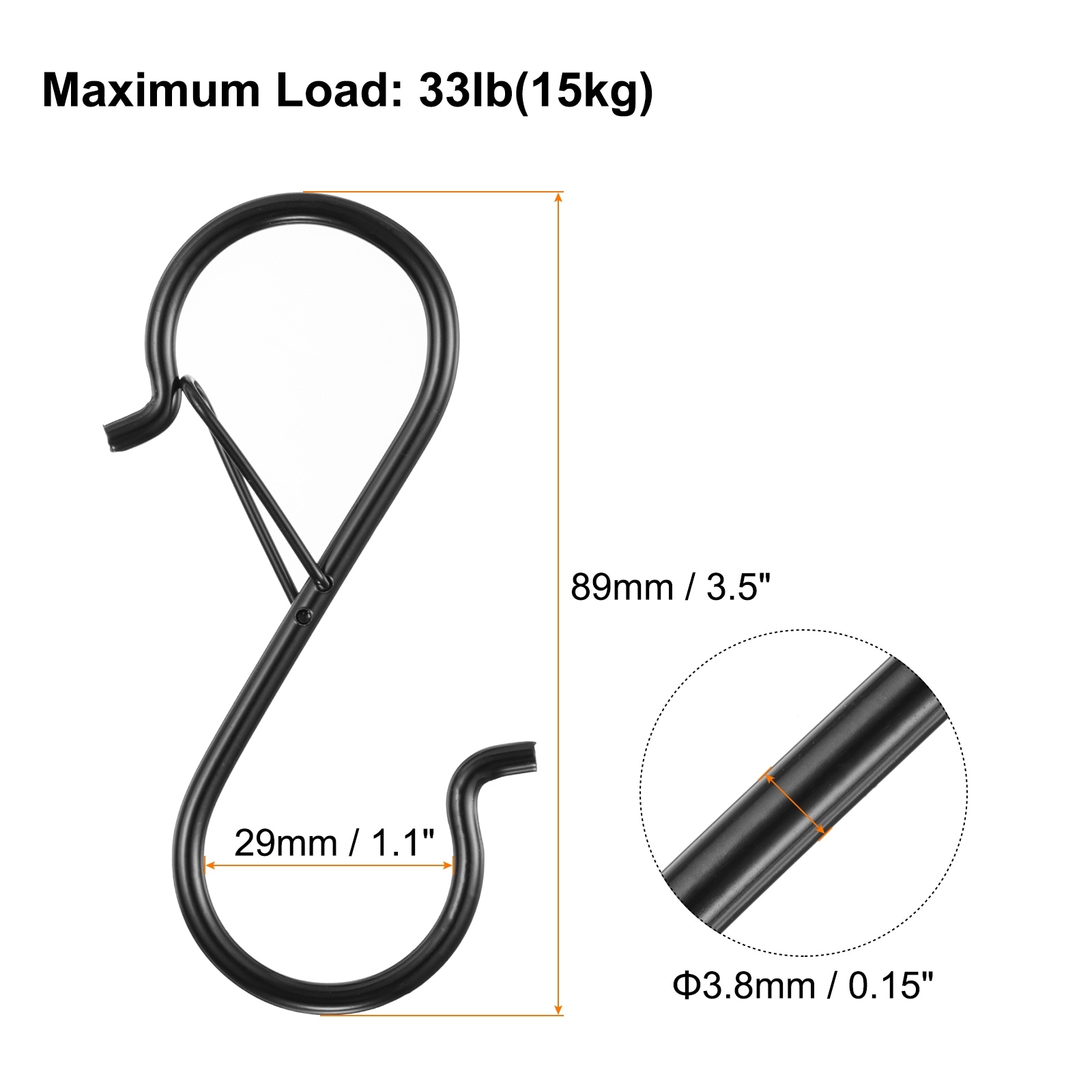 S Hooks S-shaped Metal Hook Hanger with Safety Buckle for Hanging Plants Clothes Pots and Pans Kitchen Utensil - 16Pcs