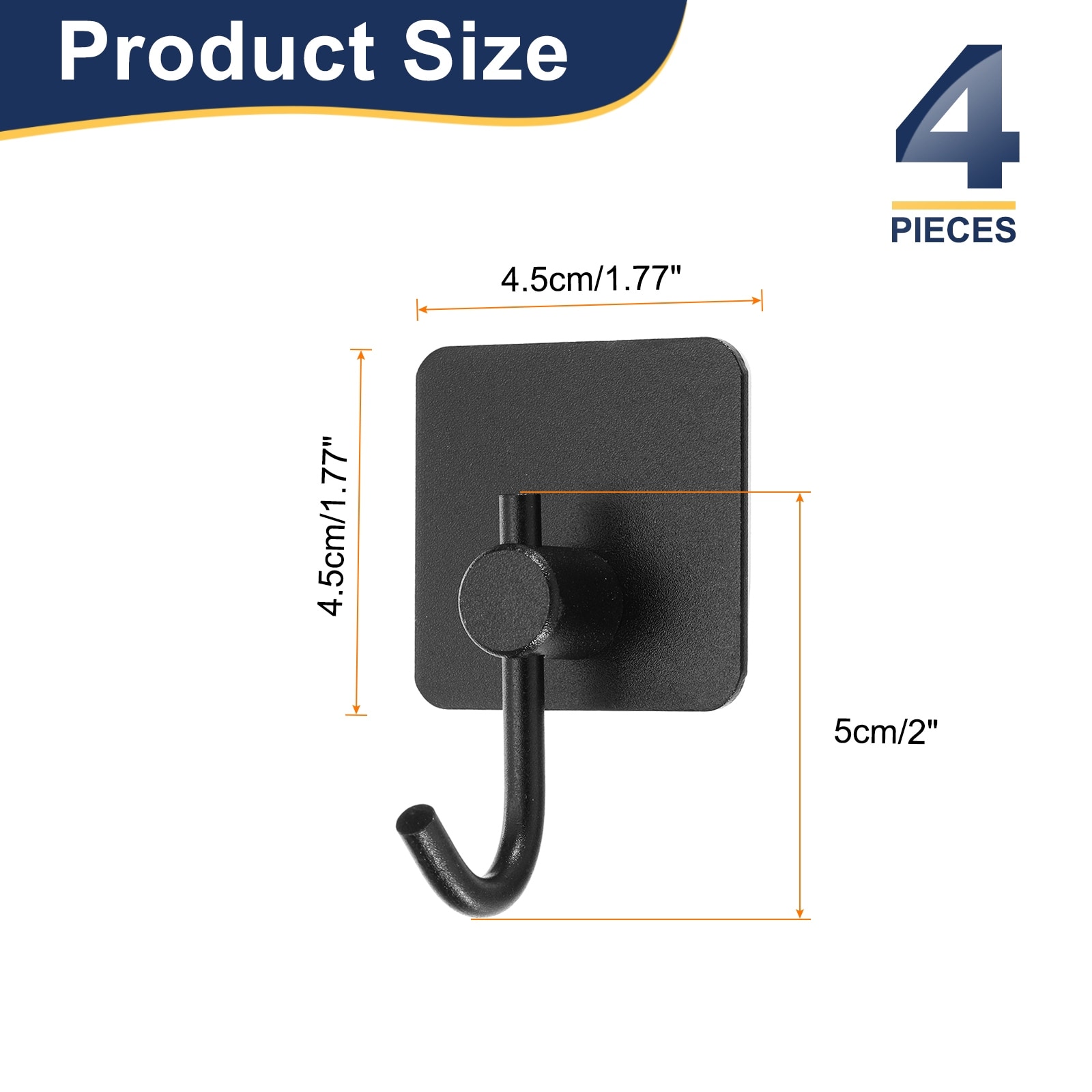 Self Adhesive Towel Hooks, Metal Square Bend Sticky Hooks for Home - 4Pcs