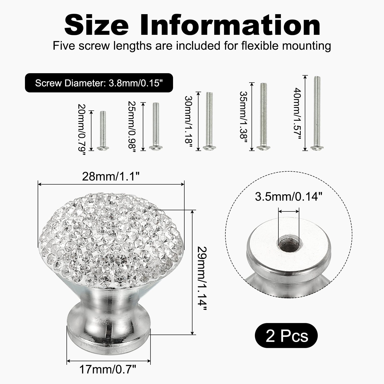 Drawer Knobs Bling Diamond Decoration Cabinet Knob, Round Rhinestones Pull Handle with Screws for Home, Office