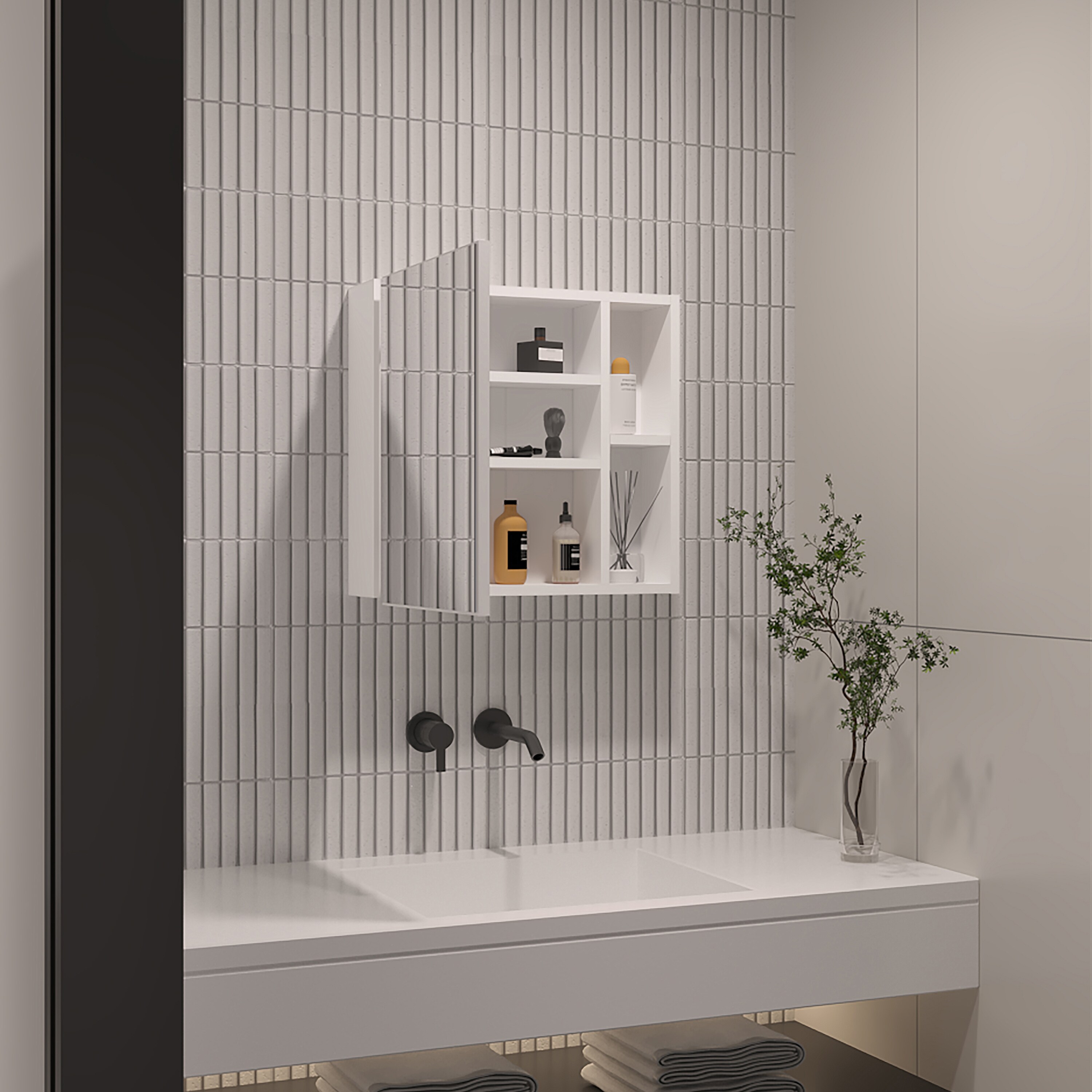Medicine Cabinet, Mirror, Two External Shelves, Single Door Cabinet, Three Interior Shelves