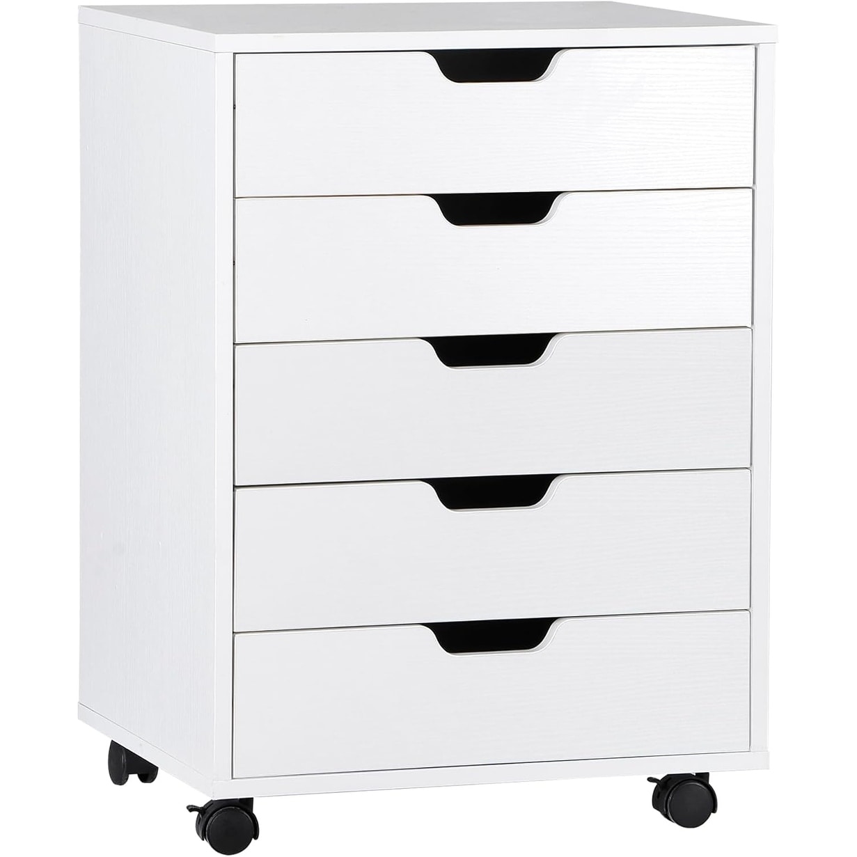 5 Drawers Mobile File Cabinet with Casters, Home Office Storage Cabinet Under Desk (White)