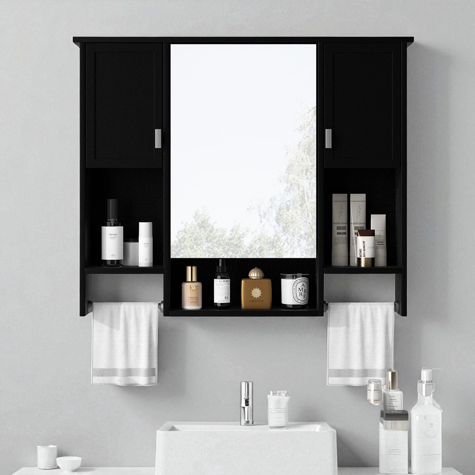 35'' x 28'' Wall Mounted Bathroom Medicine Cabinet with Mirror, Wall Cabinet with 3 Doors, Adjustable Shelves & Towel Bar