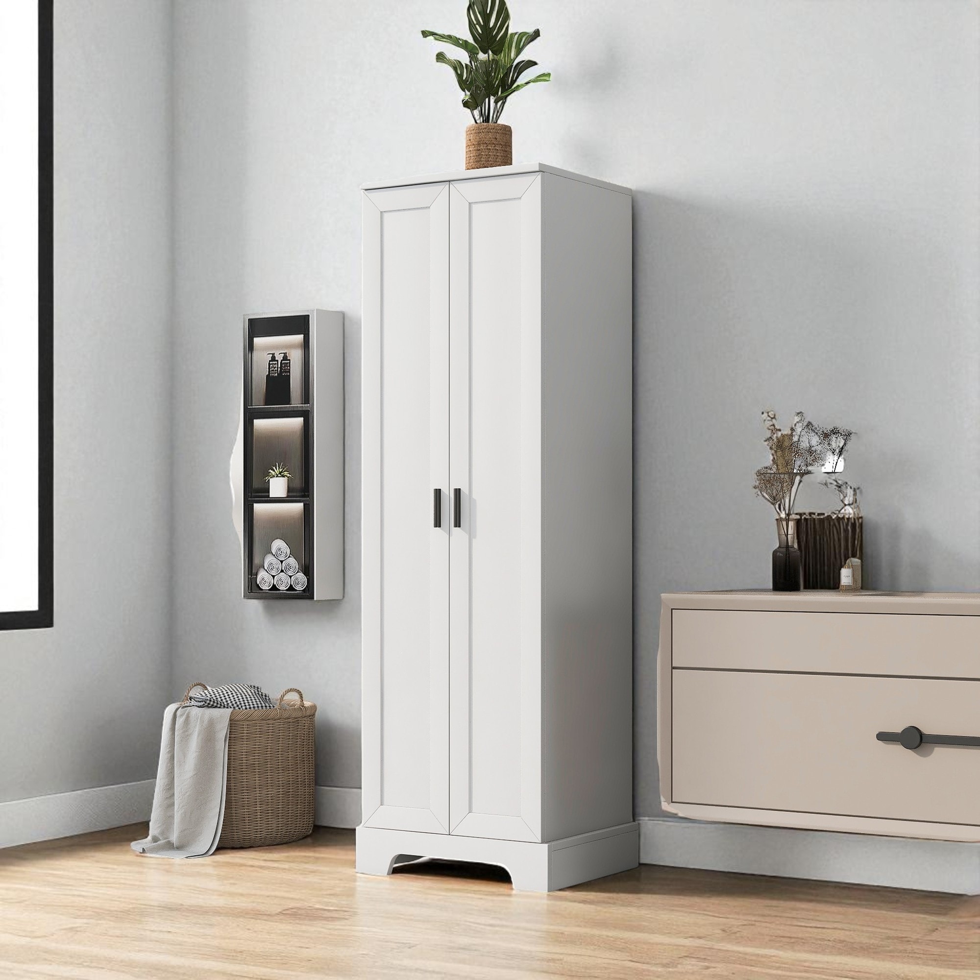 71" Tall MDF Storage Cabinet with 2 Doors, Adjustable Shelves, Anti-Tip Design for Bathroom, Office, or Living Room