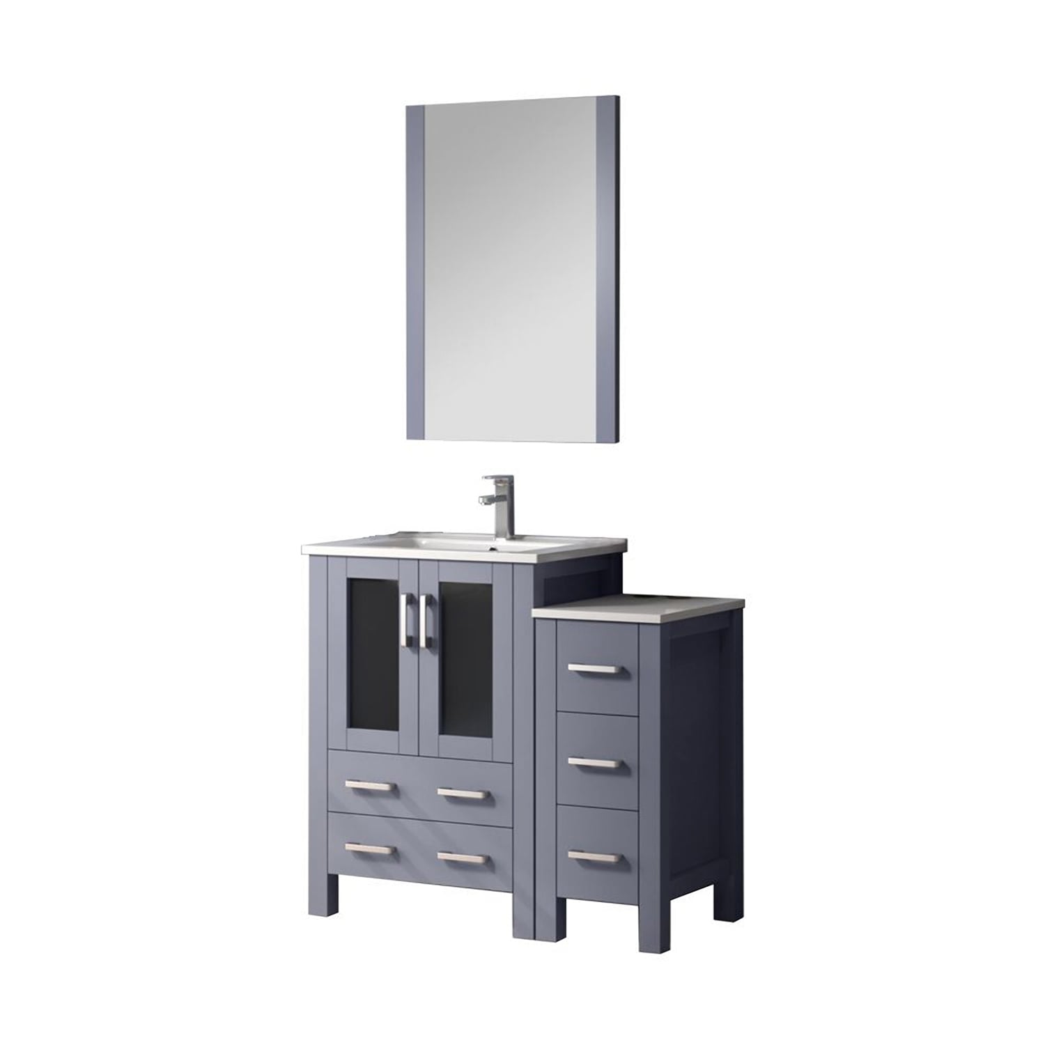 Dark Grey Bath Vanity 36 in. W x 18.25 in. D, with Side Cabinet, Faucet Set, White Ceramic Top, and 22 in. Mirror