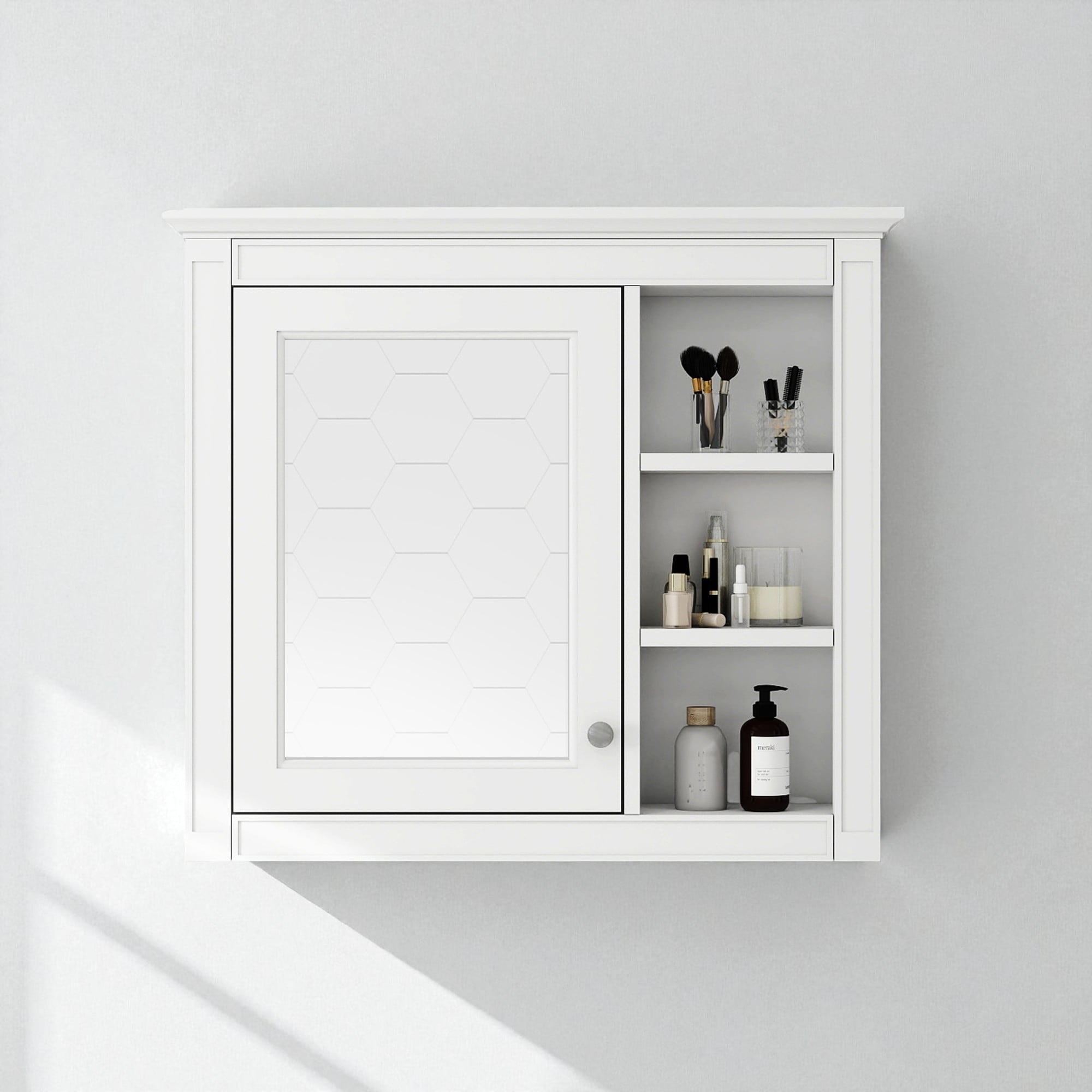 30-Inch Wall-Mounted Medicine Cabinet with Mirror, Adjustable Shelves, Hidden Storage and Open Display, MDF Bathroom Cabinet