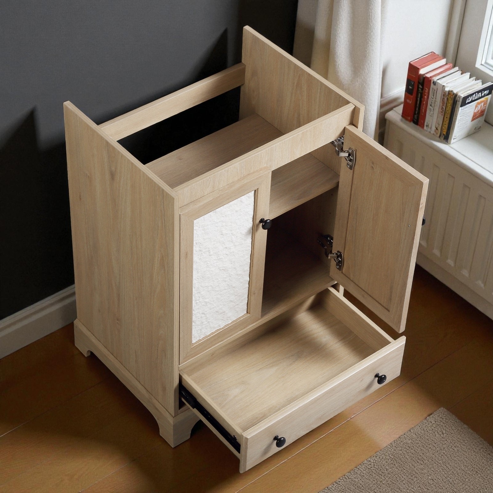 24-Inch Freestanding Wooden Bathroom Vanity Cabinet Base Only, Carved Floral Doors, Soft-Close Hinges, Easy Assembly