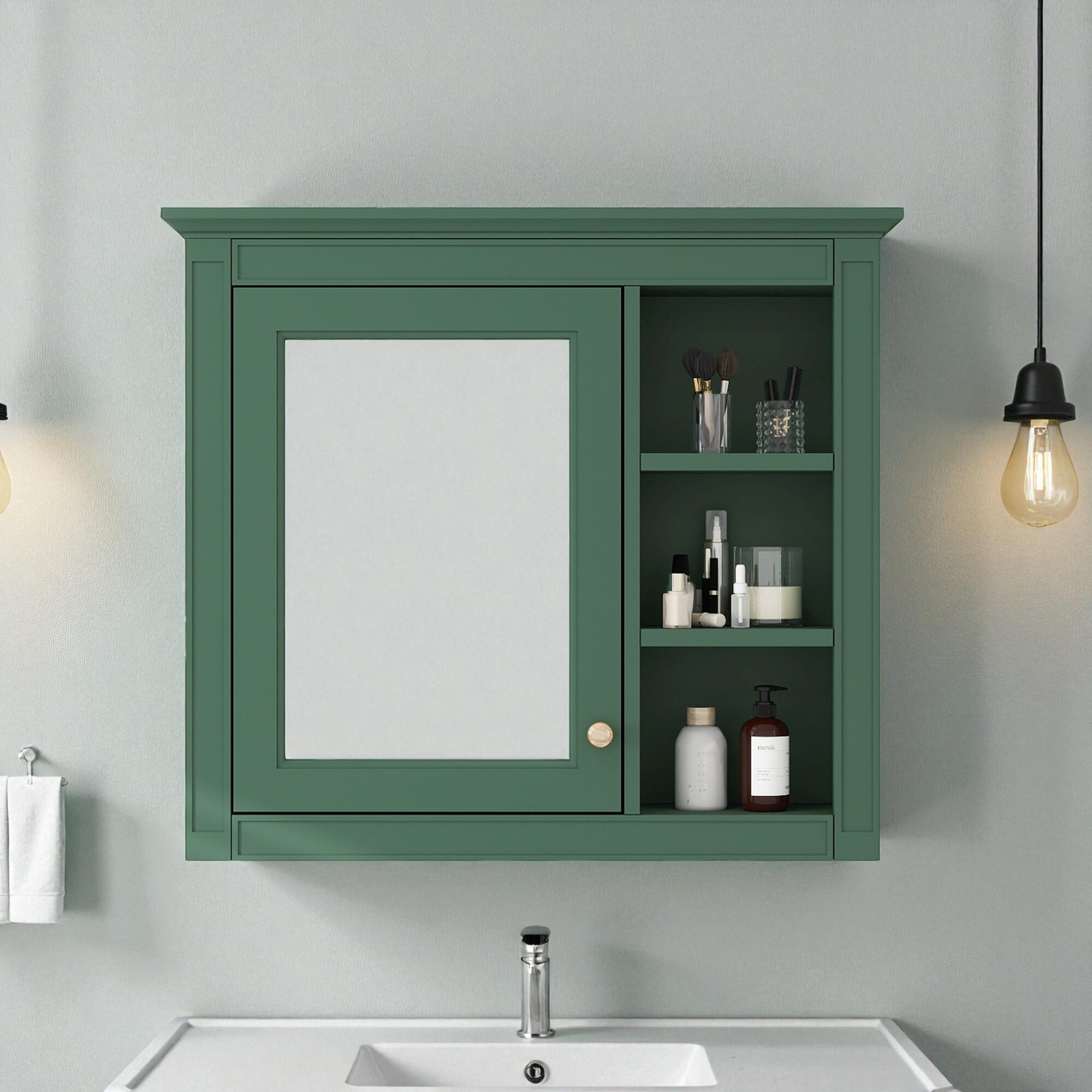 30-Inch Wall-Mounted Medicine Cabinet with Mirror, Adjustable Shelves, Hidden Storage and Open Display, MDF Bathroom Cabinet
