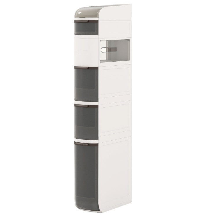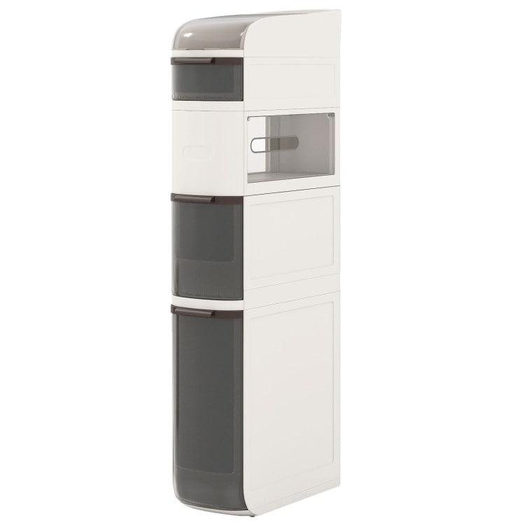 White PET PP ABS Narrow Bathroom Storage Cart with Drawers and Wheels
