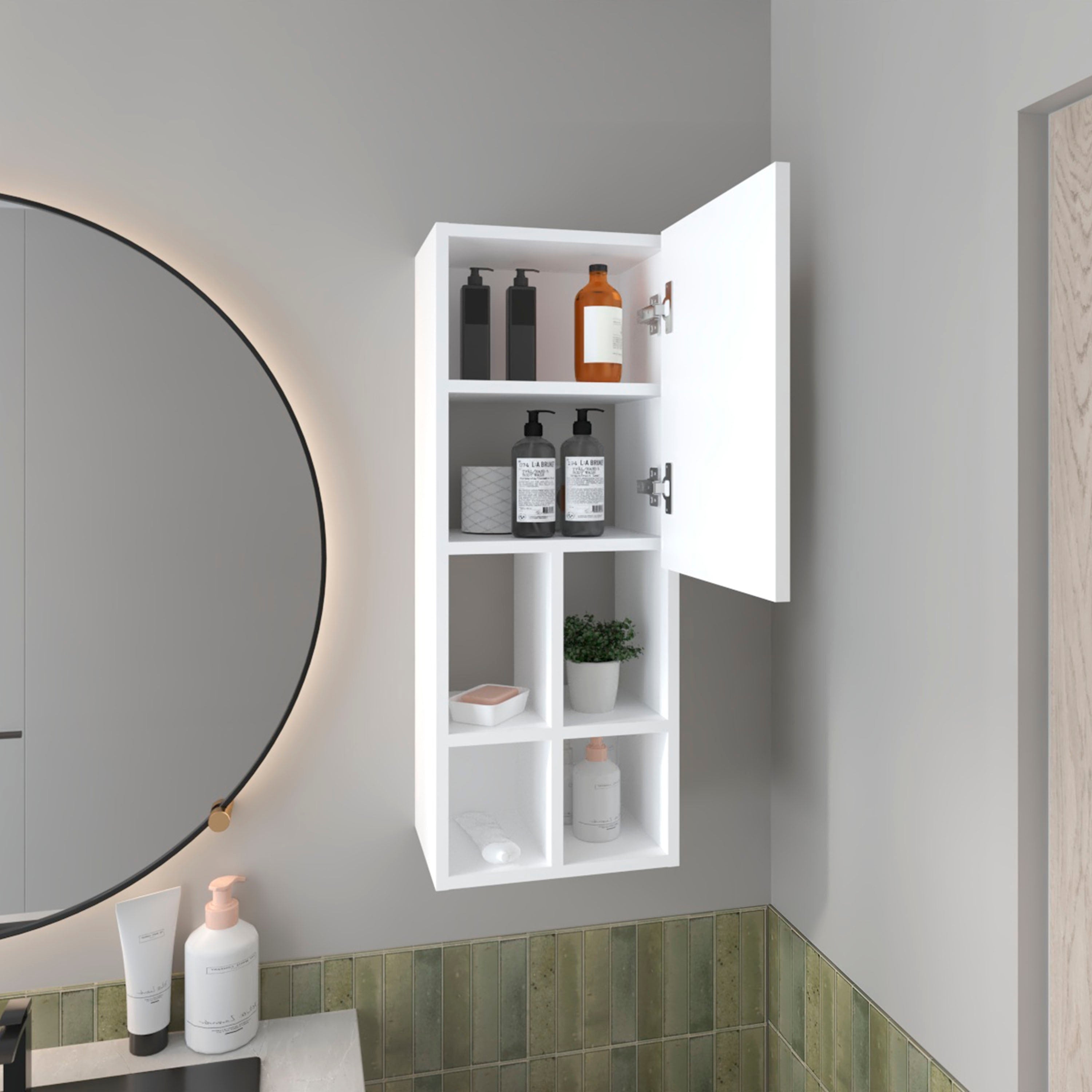 White Wall-Mounted Bathroom Cabinet with Door and 4 Open Shelves