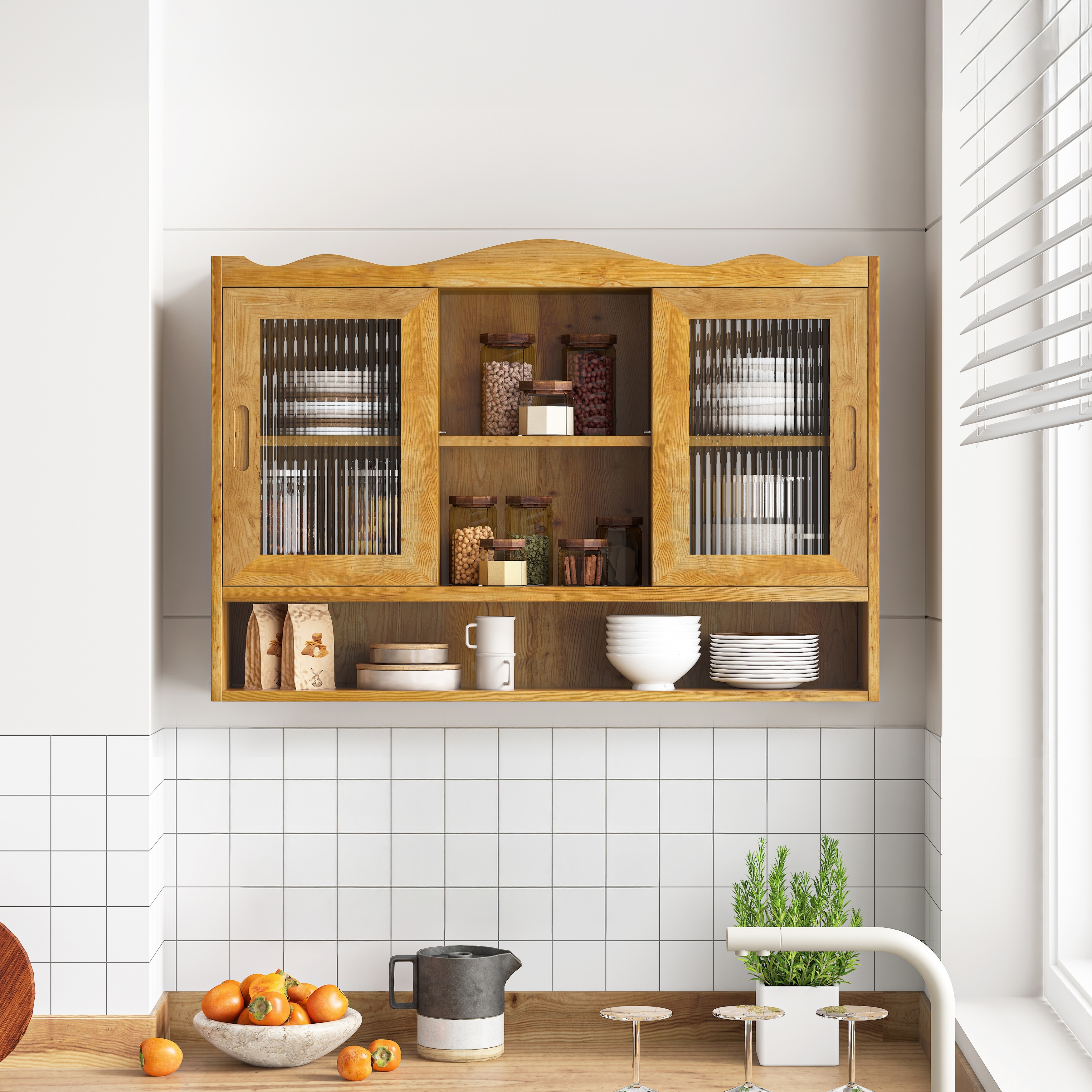 Glass Door Vintage Wall Cabinet with Storage.