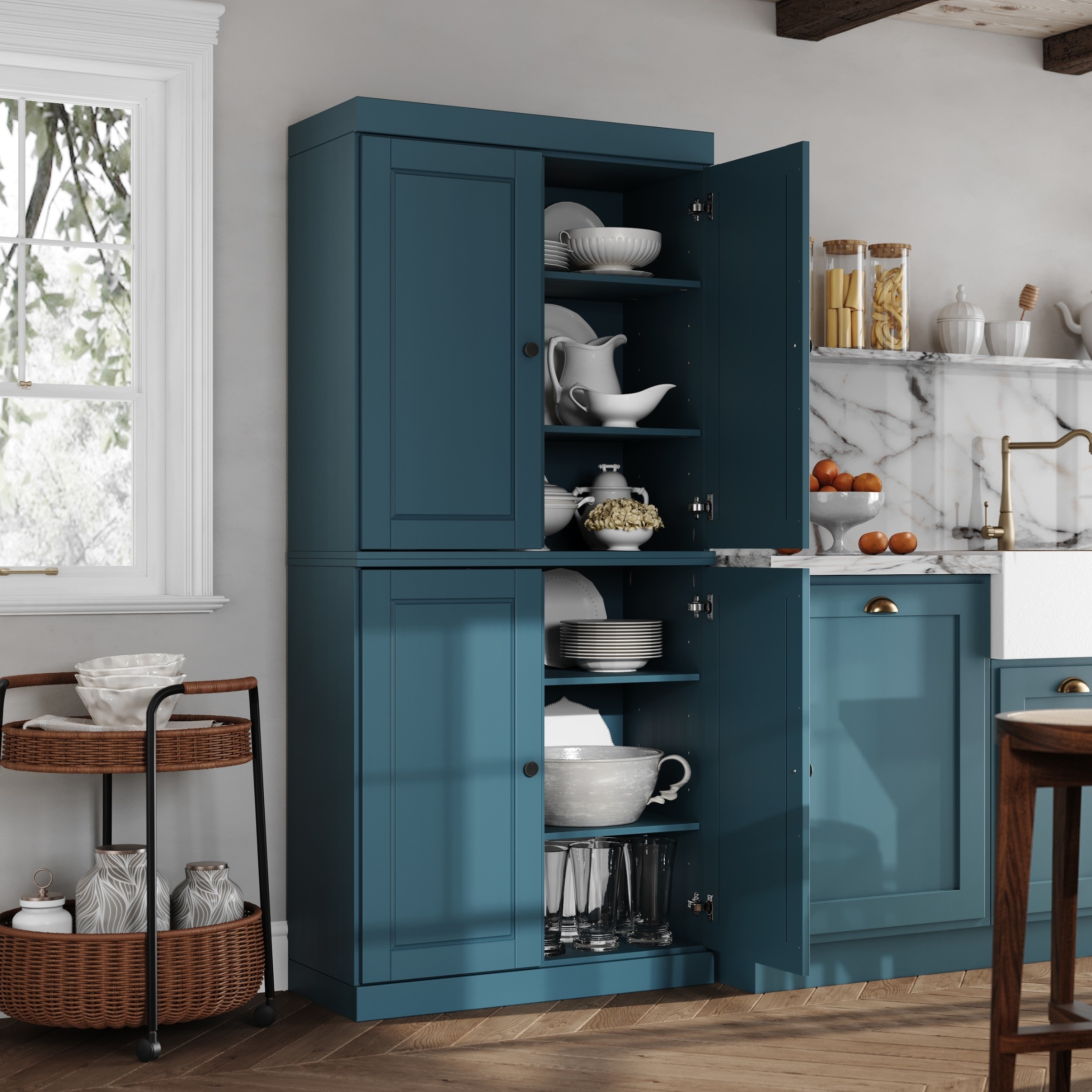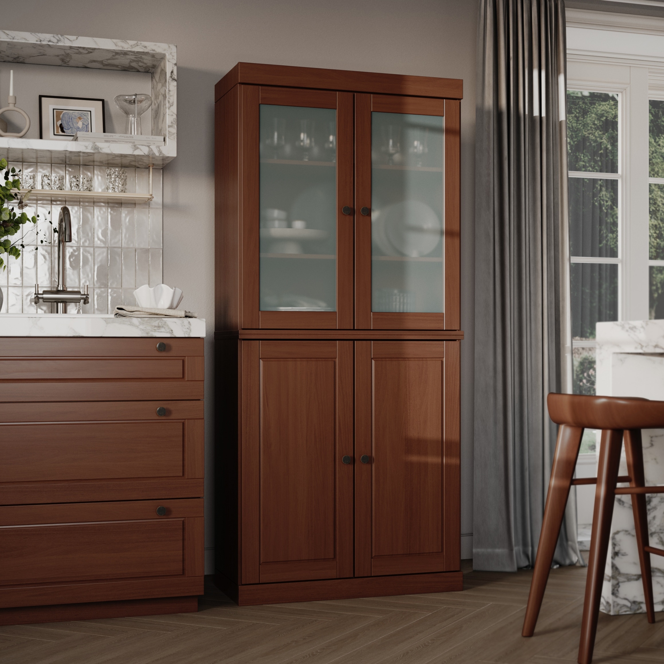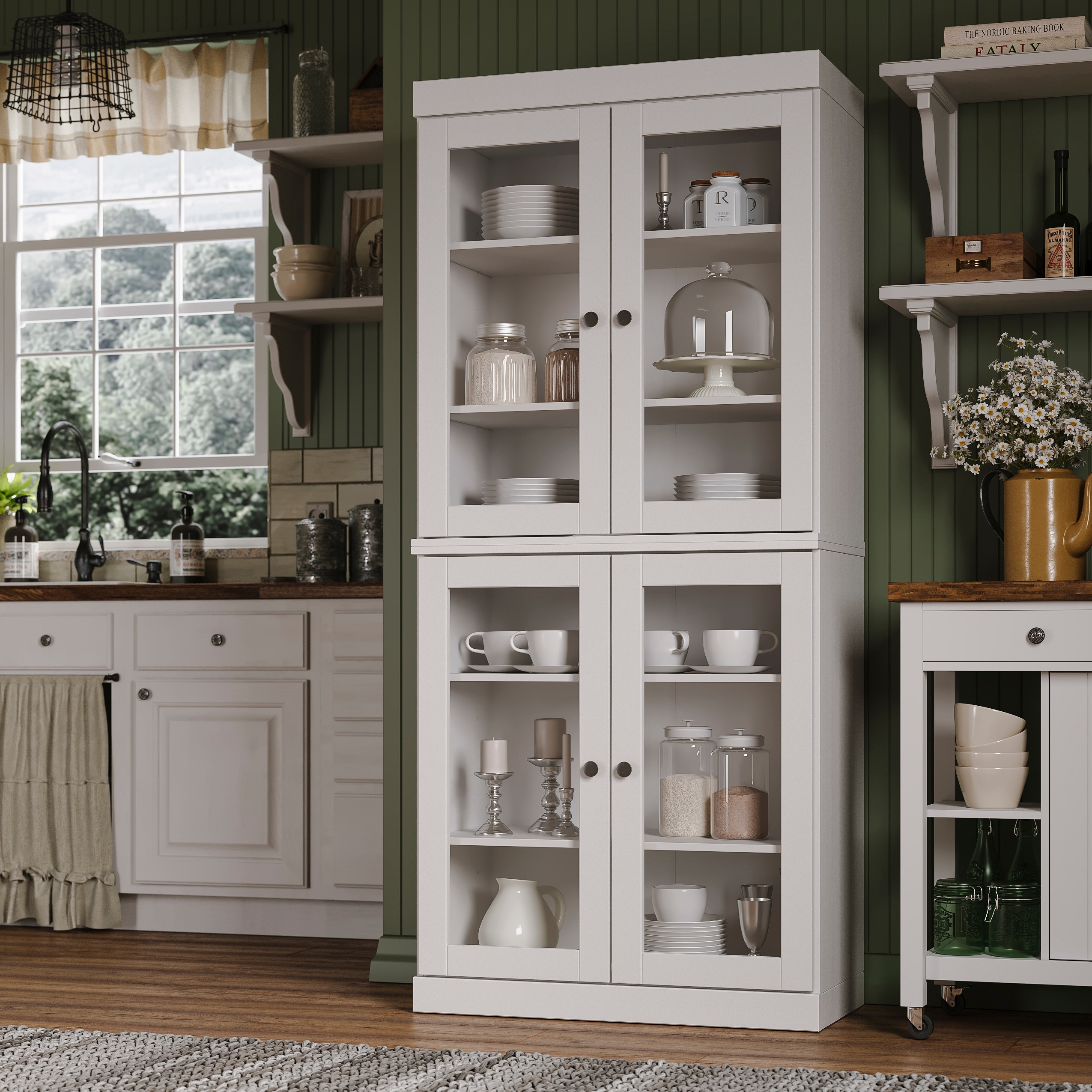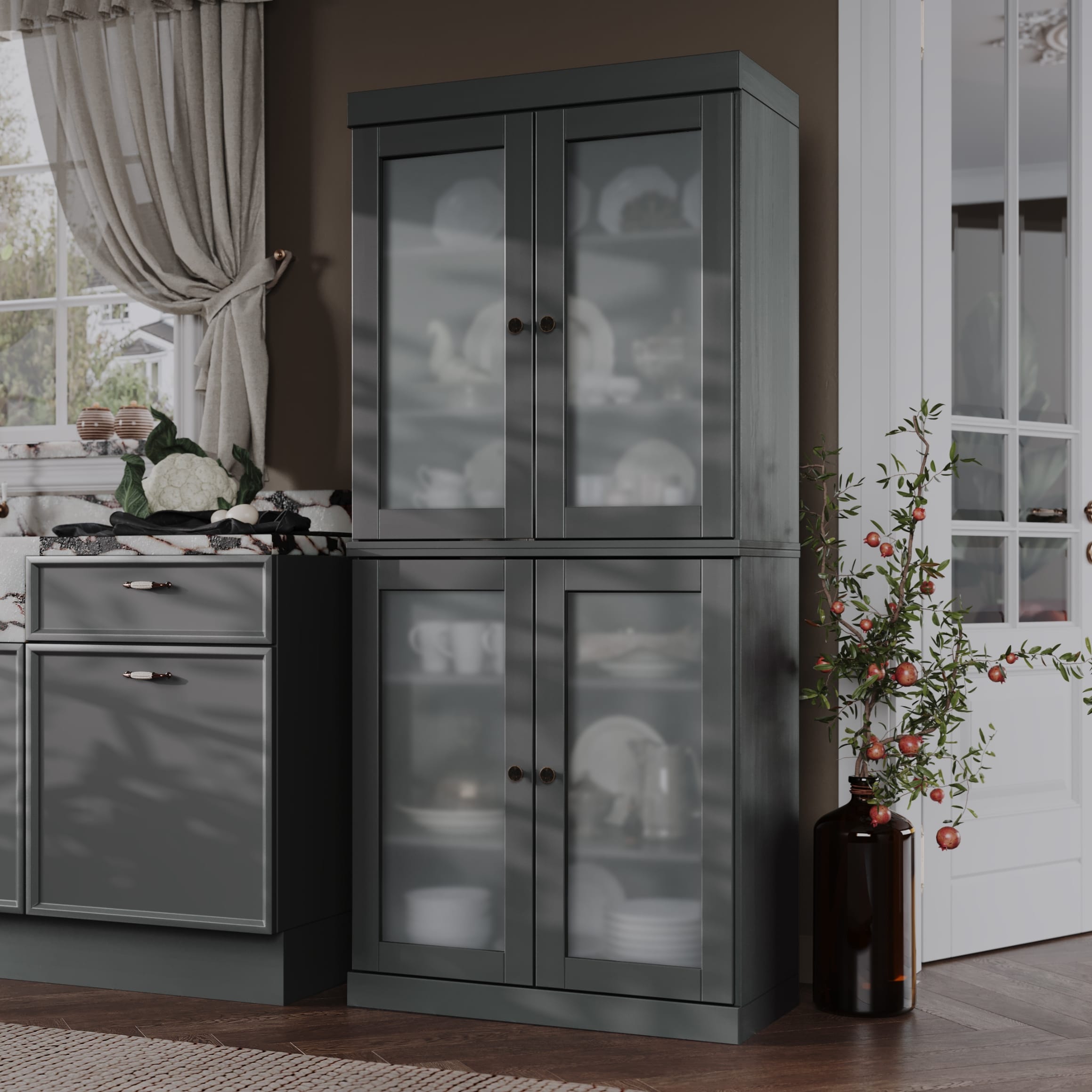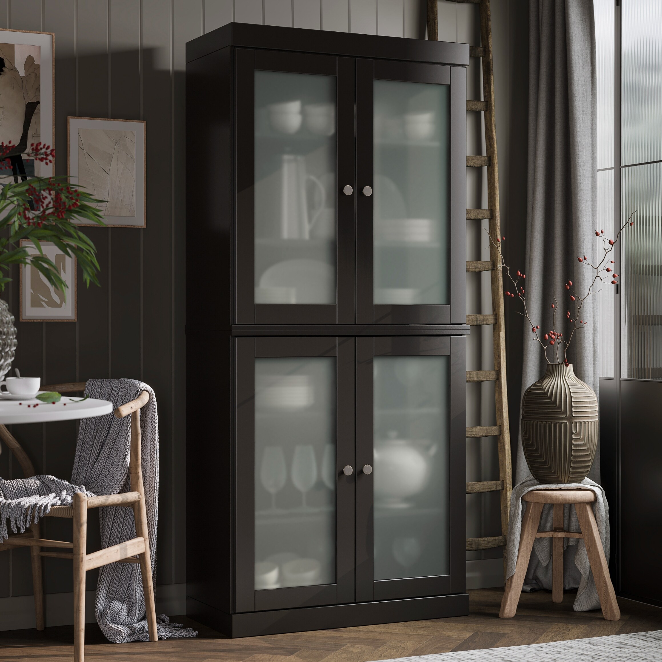 Palace Imports 100% Solid Wood Pantry Cabinet with Frosted, Clear Glass or Solid Doors and Adjustable Shelves