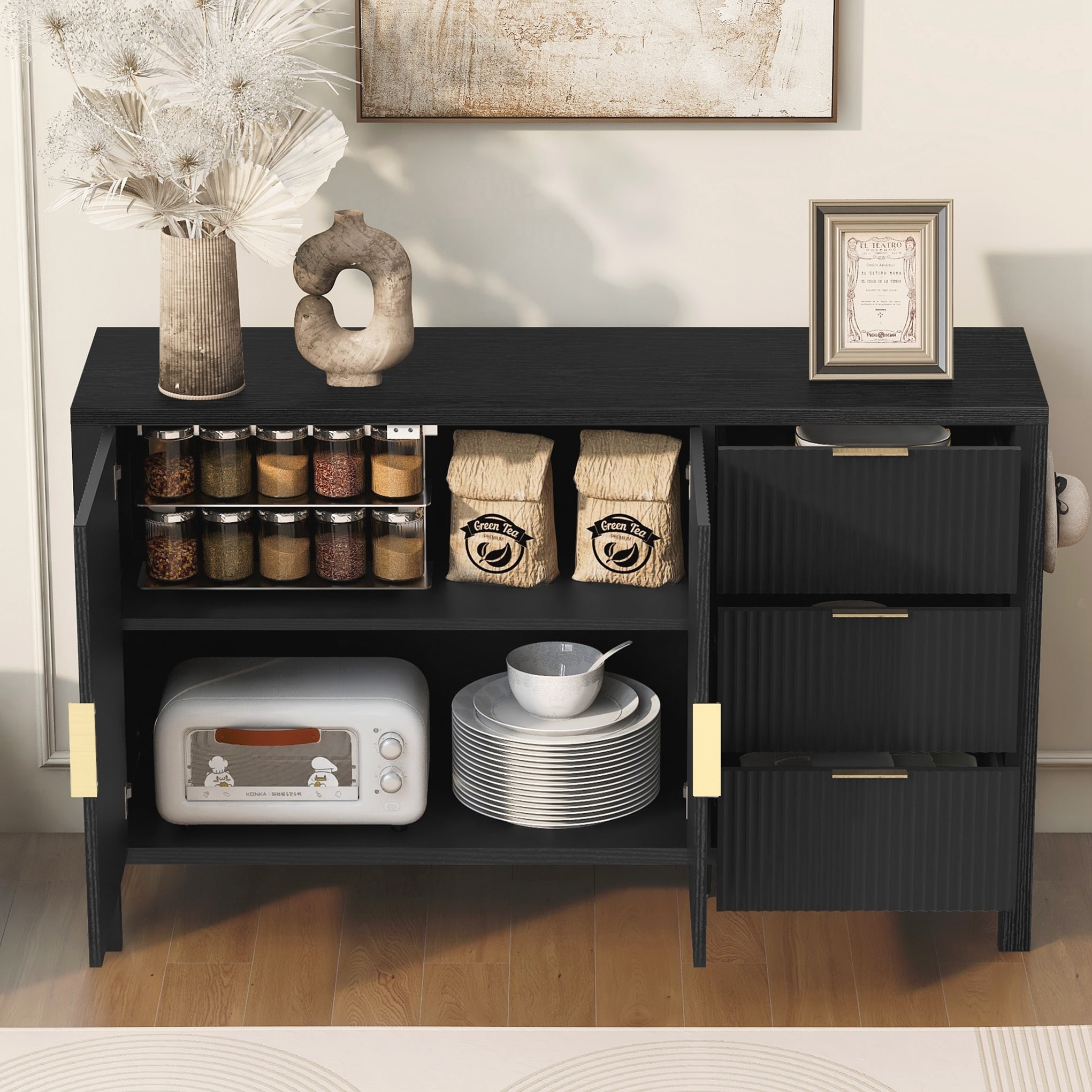 Modern Wave-Pattern Sideboard with 3 Drawers, Large Storage Buffet Cabinet with Hooks and Extra Center Leg