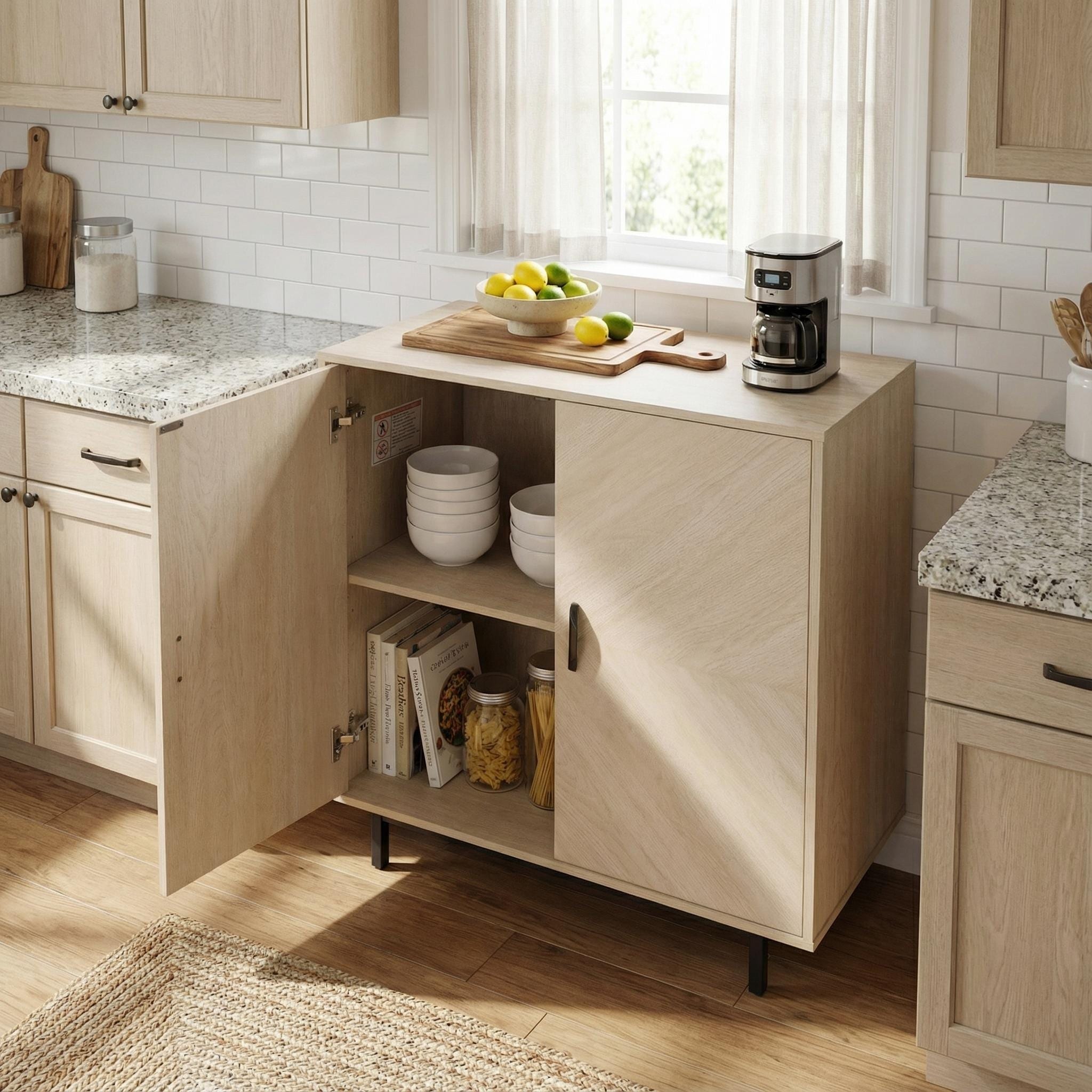 Homy Casa Herringbone Accent Cabinet, Adjustable Shelf, Living Sideboard