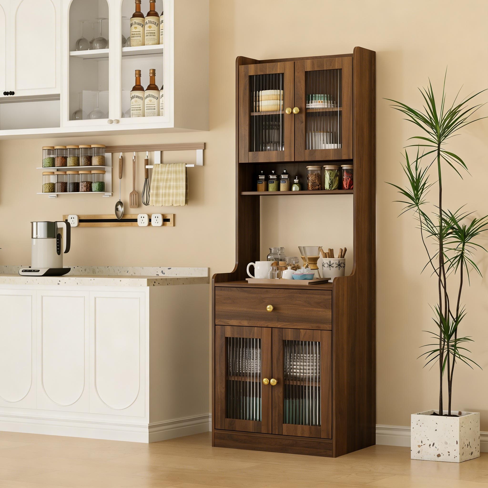 70" Tall Kitchen Pantry Cabinet with Glass Doors, Drawers & Shelves, Buffet Hutch for Dining Room & Coffee Bar