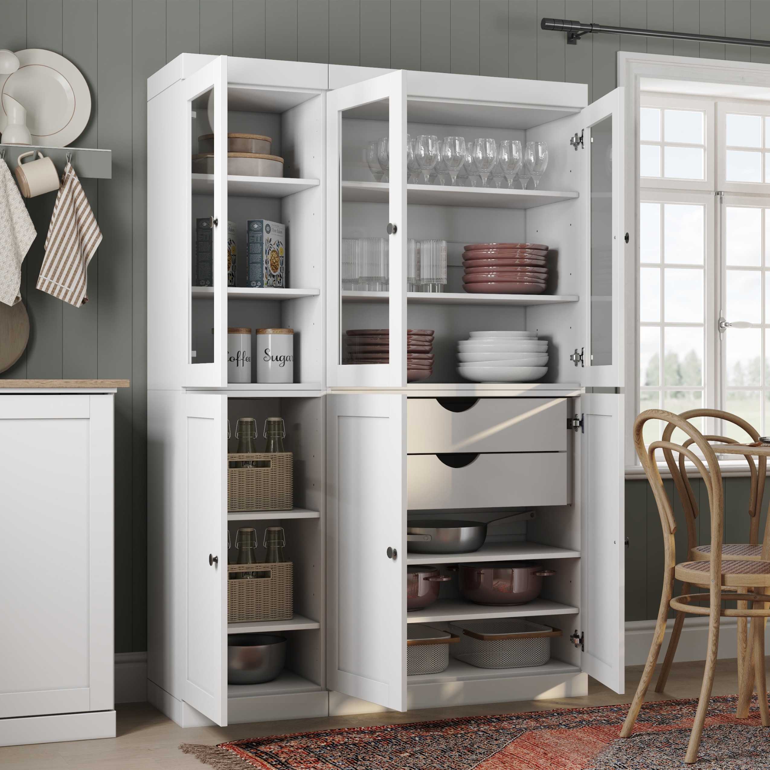 Palace Imports 100% Solid Wood 48.5" Pantry Cabinet with Clear Glass, Shaker Doors, 2-Drawers and Adjustable Shelves