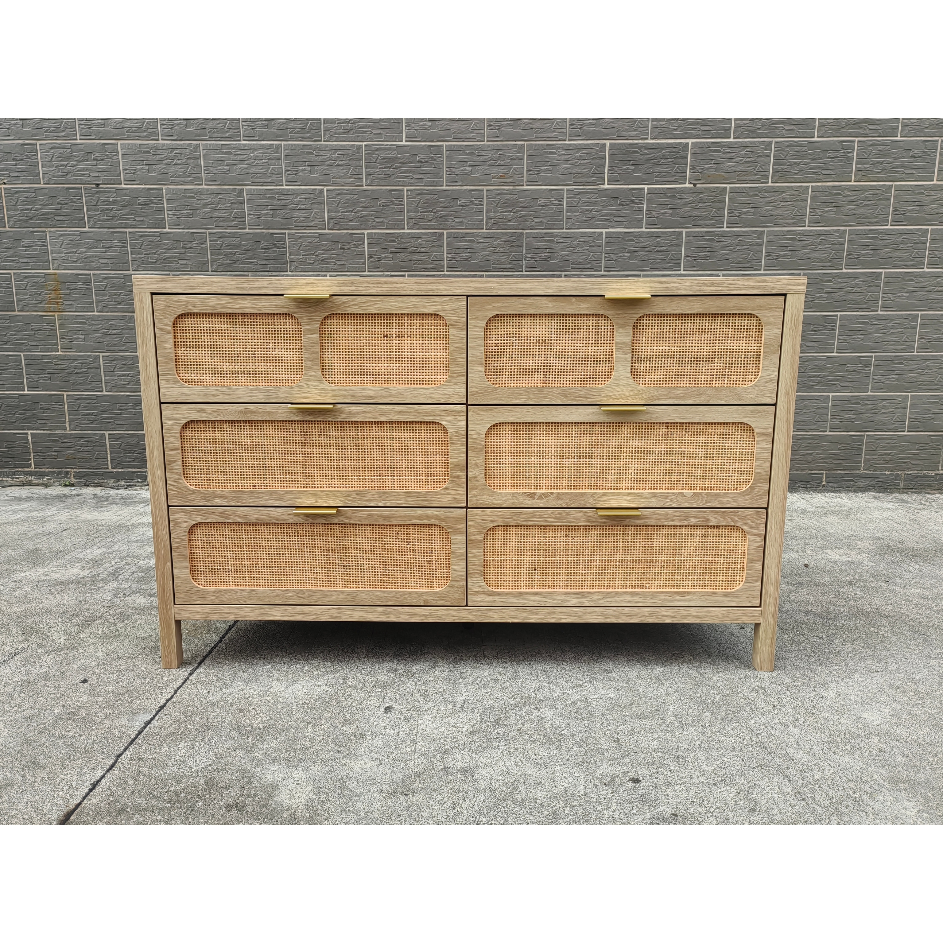 6 Drawer Dresser, Rattan Dresser for Bedroom