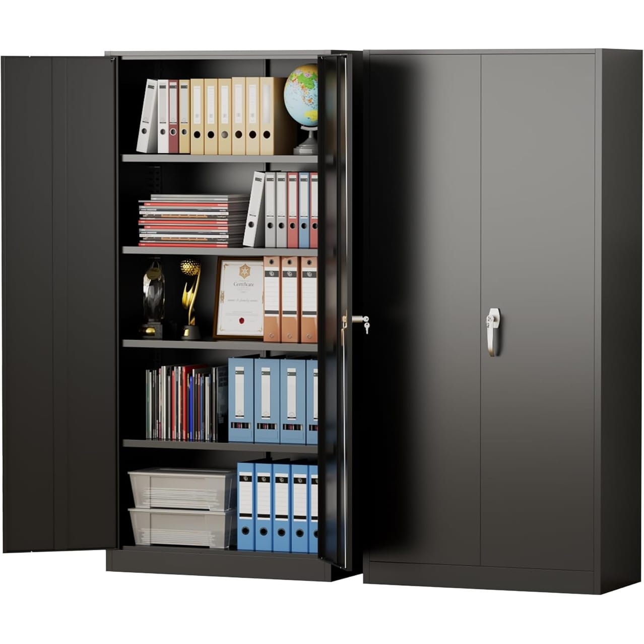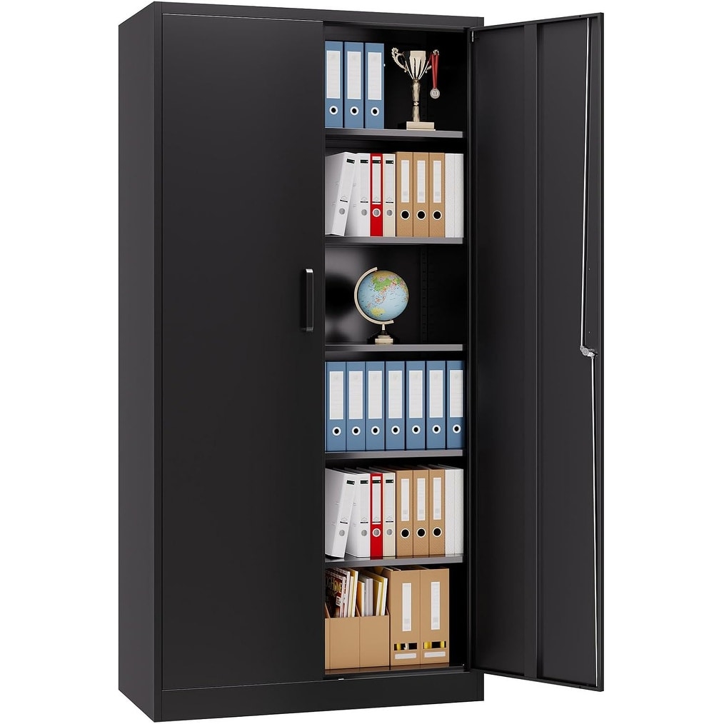 71'' Metal Storage Cabinet with 2 Doors, 4 Adjustable Shelves, Lockable Design, Black
