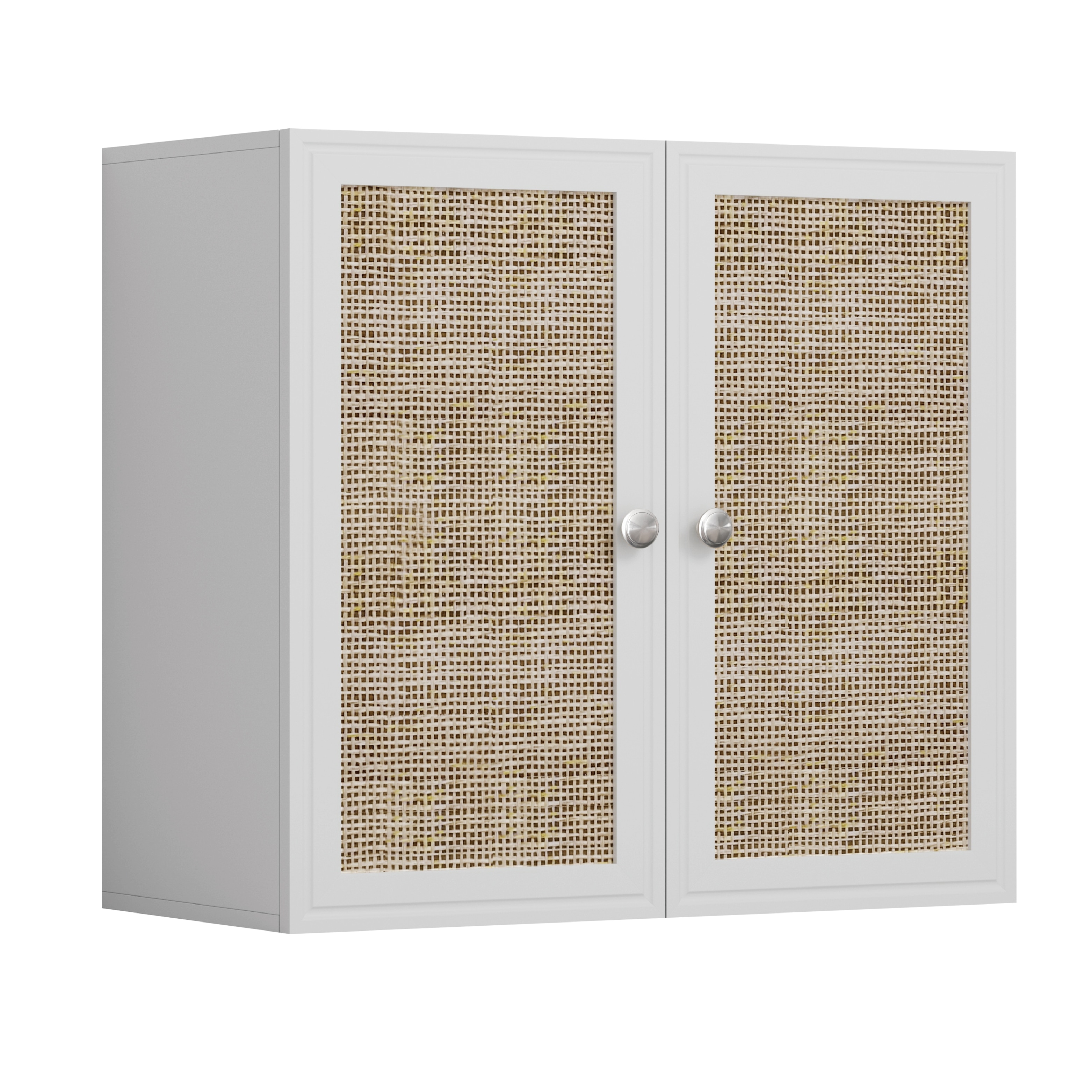 Rattan Wall Cabinets with Adjustable Shelf & LED Light