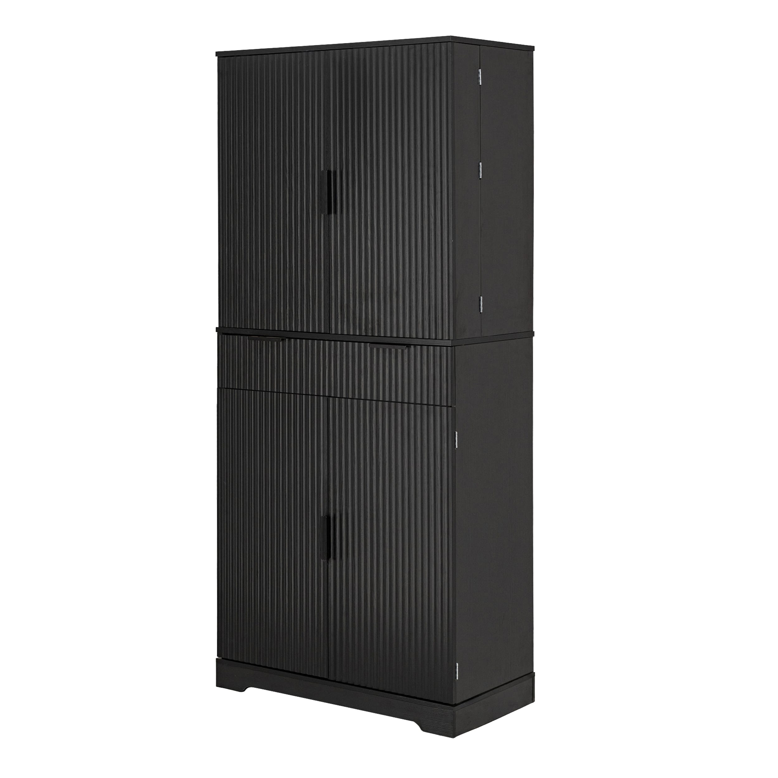Pantry Cabinet with Pull-Out Drawers, Spice Rack, Fridge-Style Storage