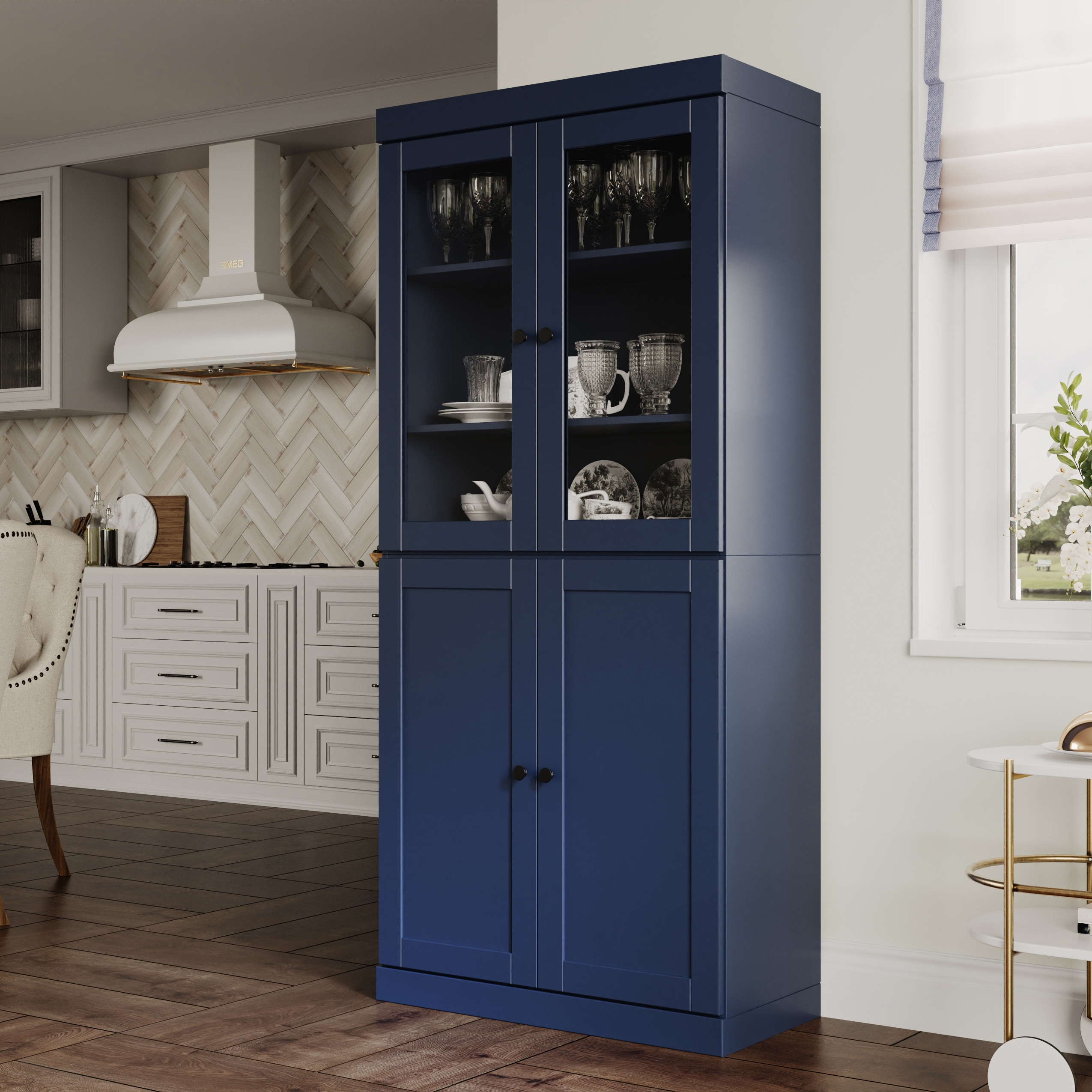 Palace Imports 100% Solid Wood 32" Pantry Cabinet with Clear Glass, Shaker Doors and Adjustable Shelves