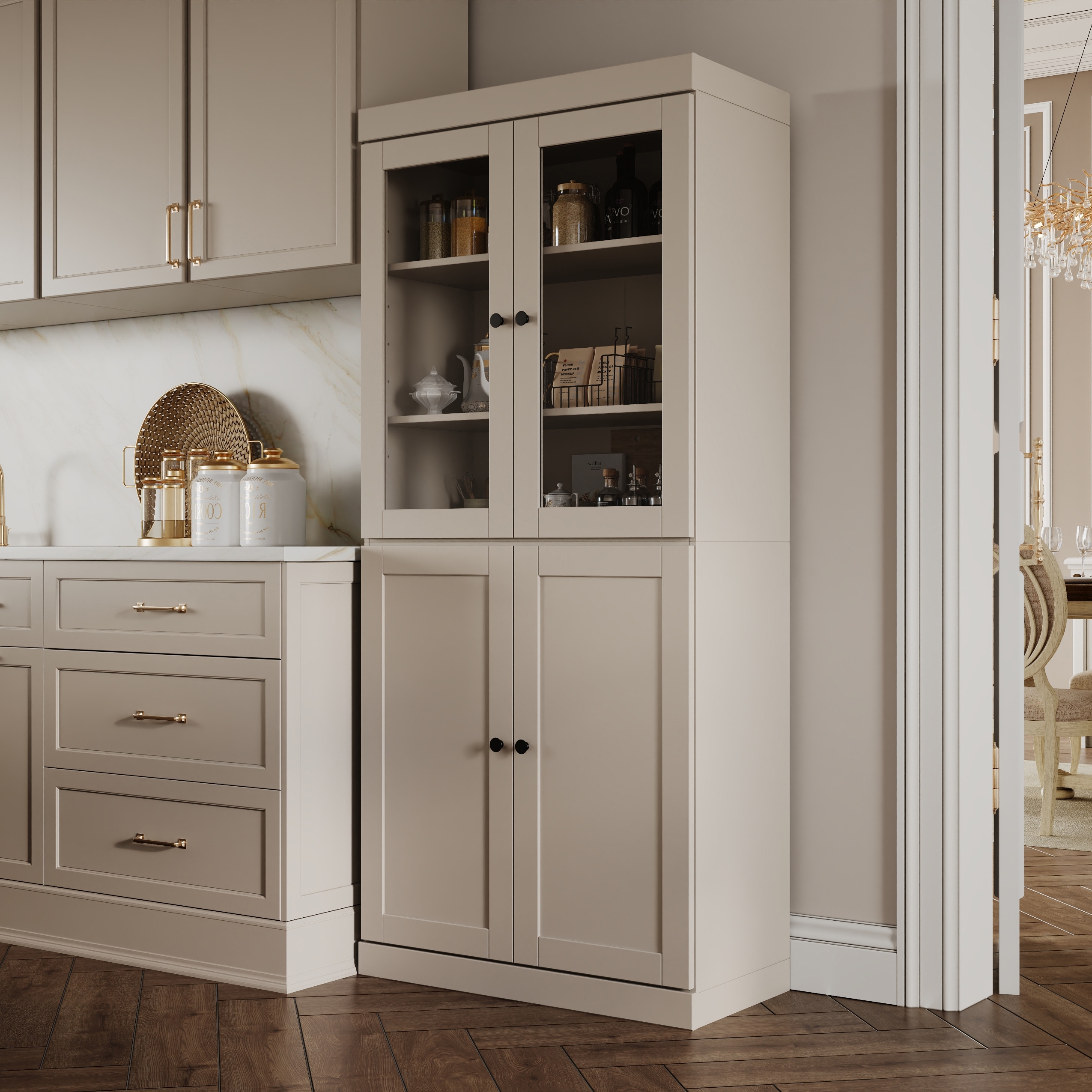 Palace Imports 100% Solid Wood 32" Pantry Cabinet with Clear Glass, Shaker Doors and Adjustable Shelves