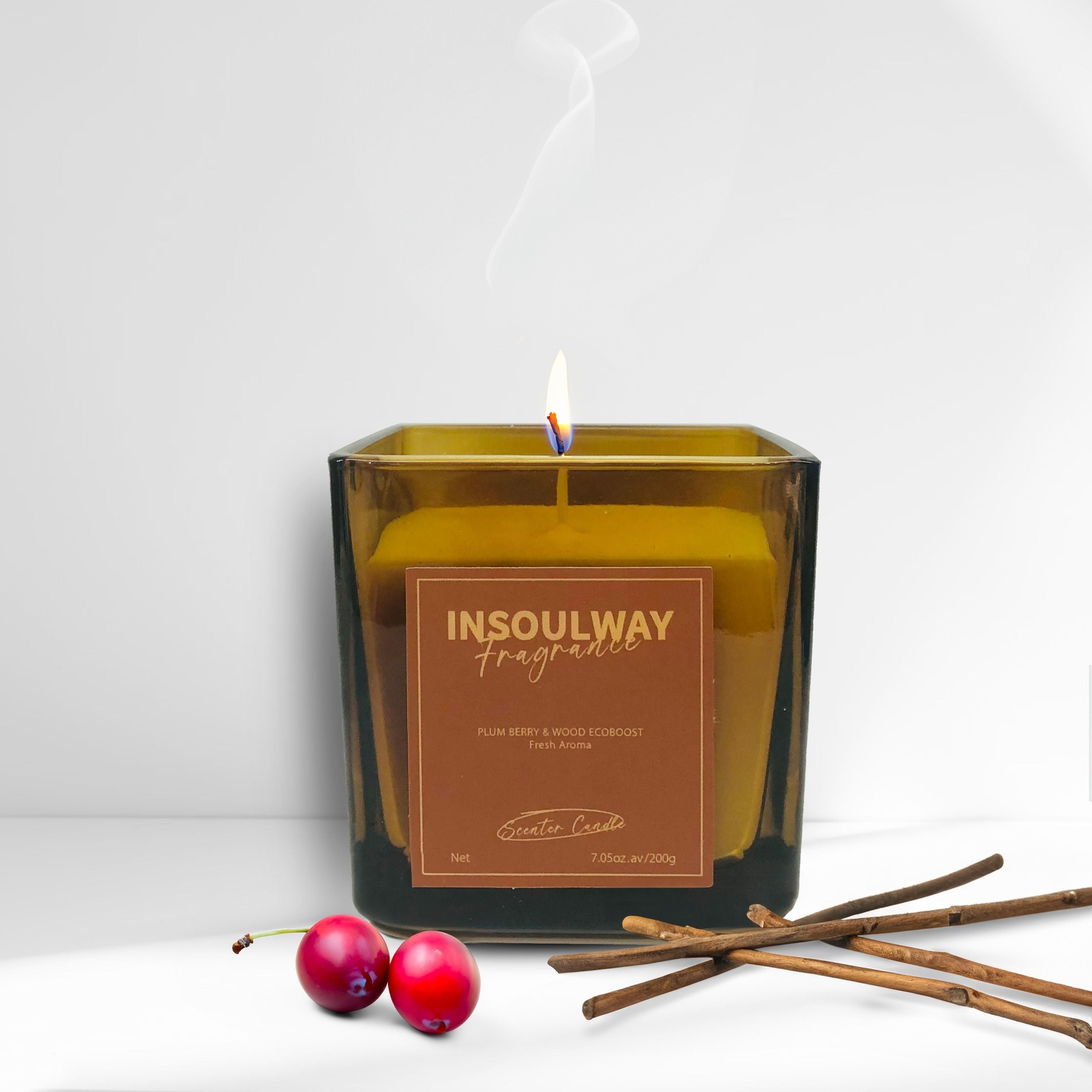 Champagne Gold Plum Wood Fancy Candle 8 oz Glass Jar Aromatherapy