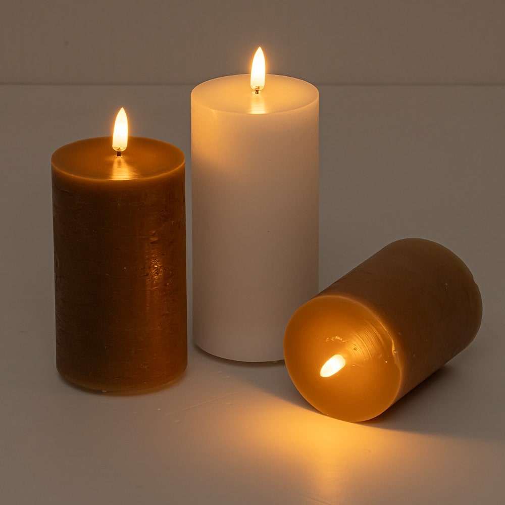 CraftHome Set of 3 USB-C Rechargeable Flameless Pillar Candles in Real Wax with Remote and Timer, Cream White & Brown - H7''