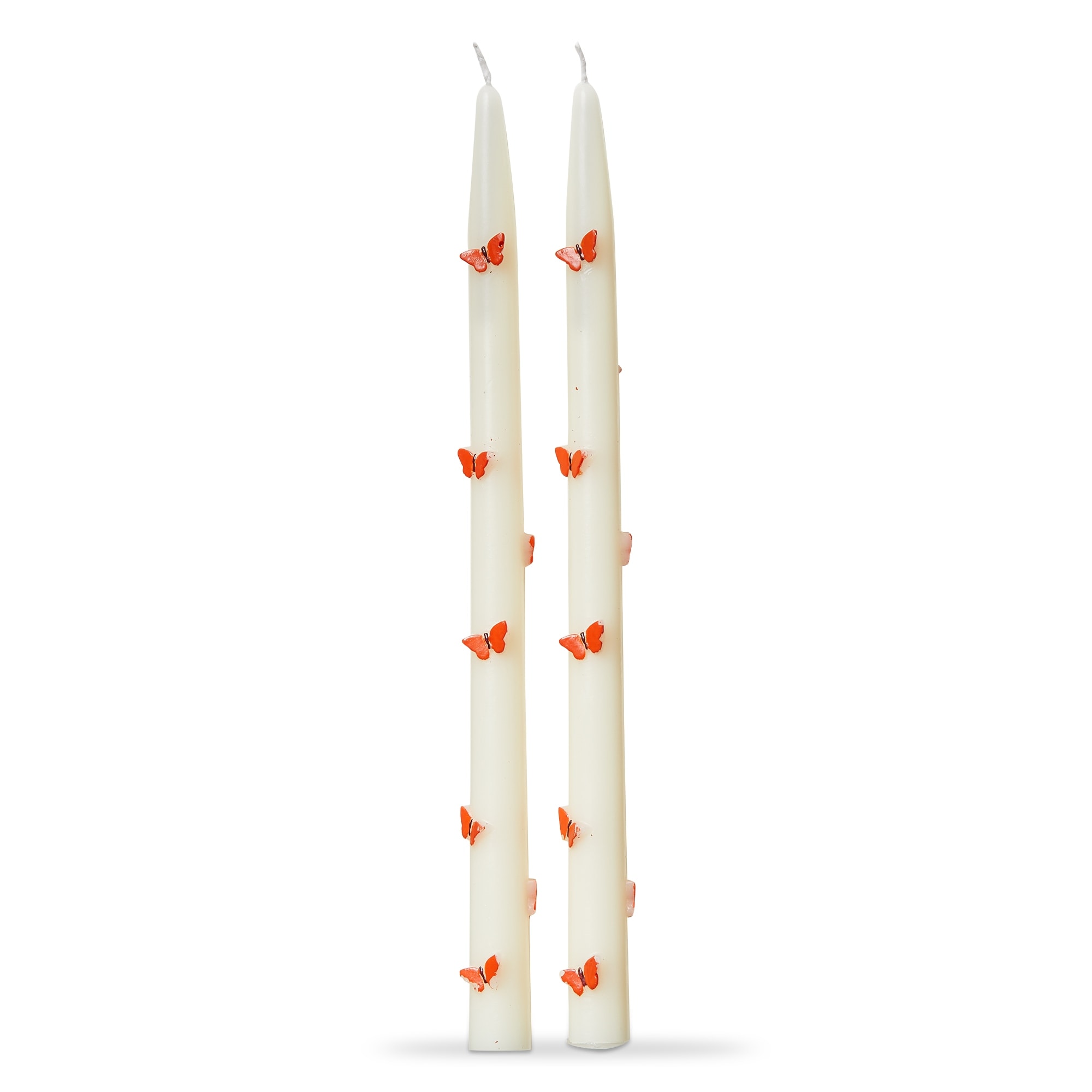 Garden Butterfly Hand Painted Taper Candles - White, 12" Height, 6 Hour Burn Time, Perfect for Everyday Use