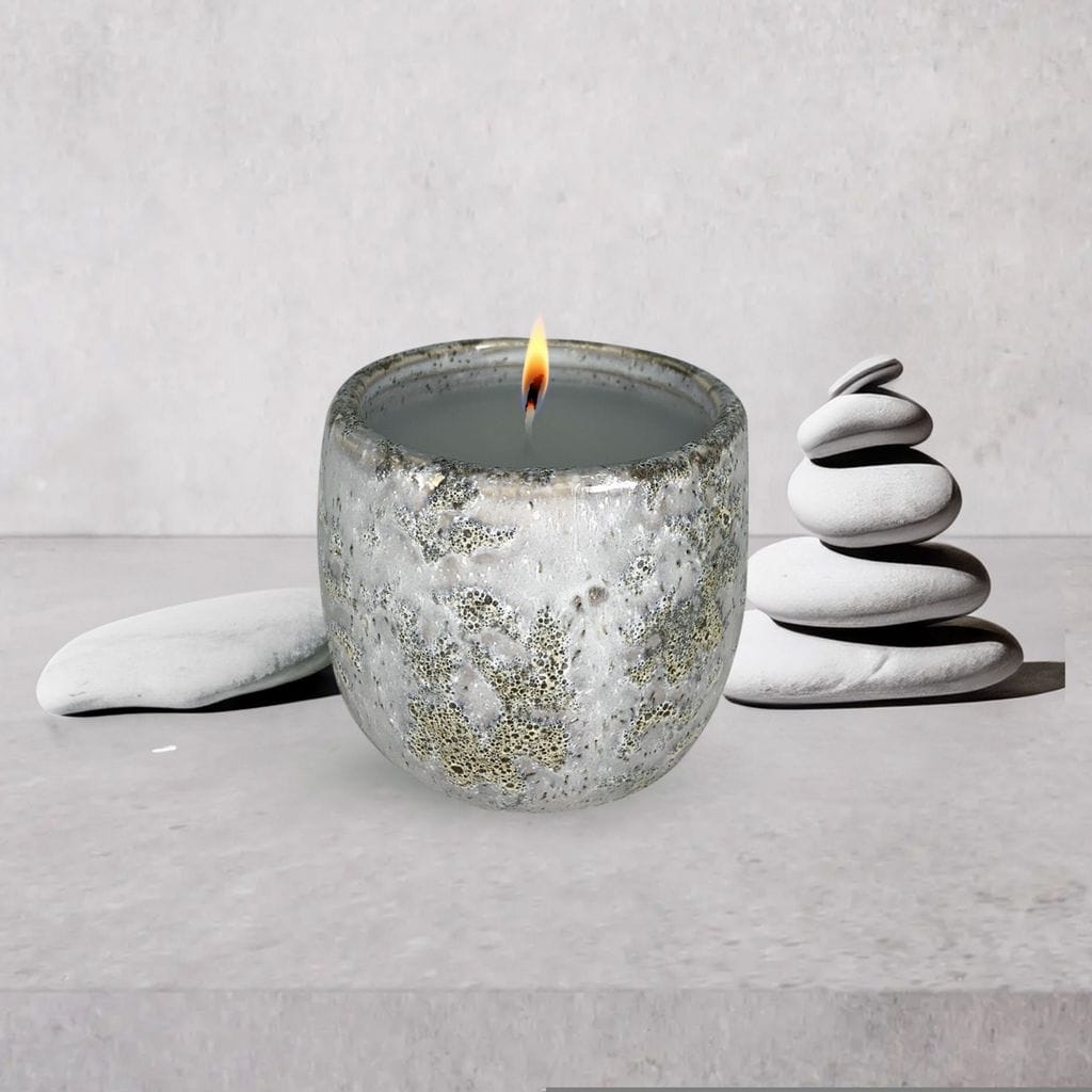 Set of Two 6 Oz Stone Colored Rustic Ceramic Candle Jar