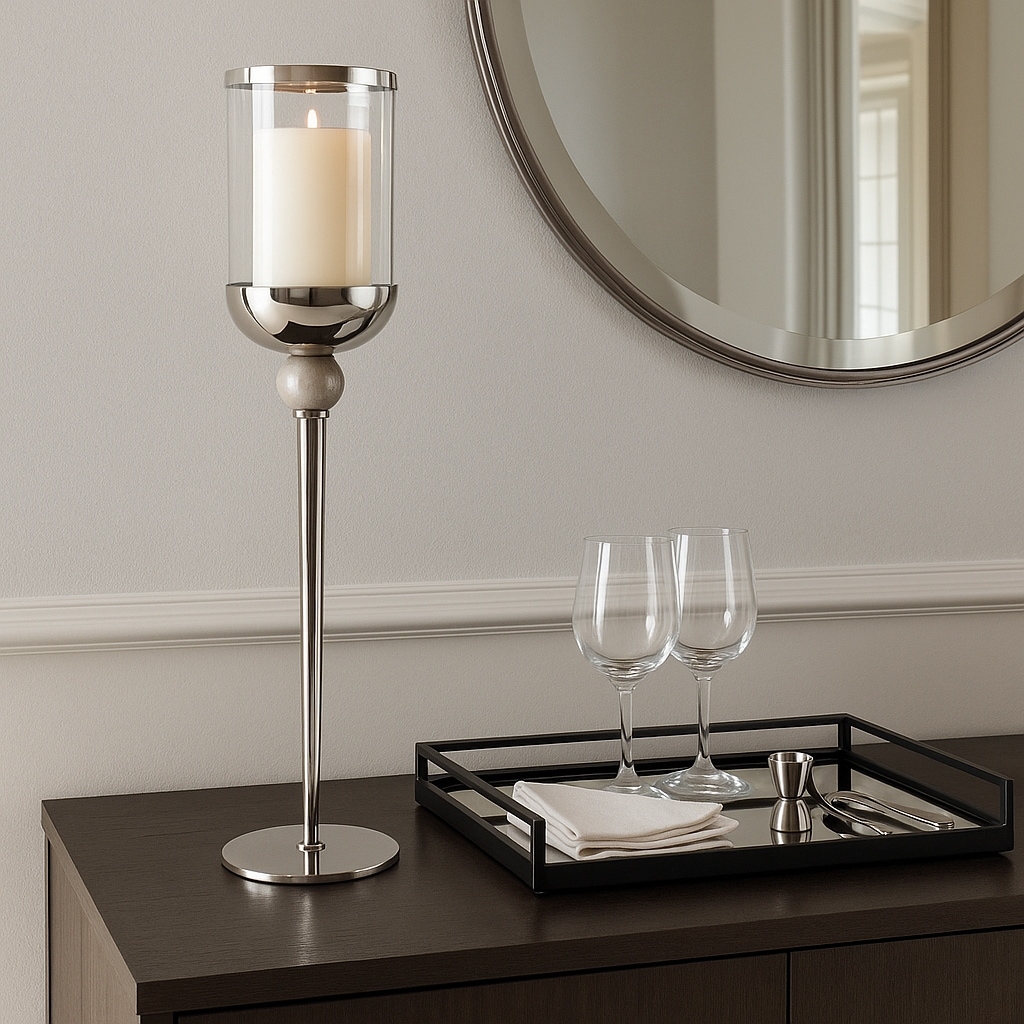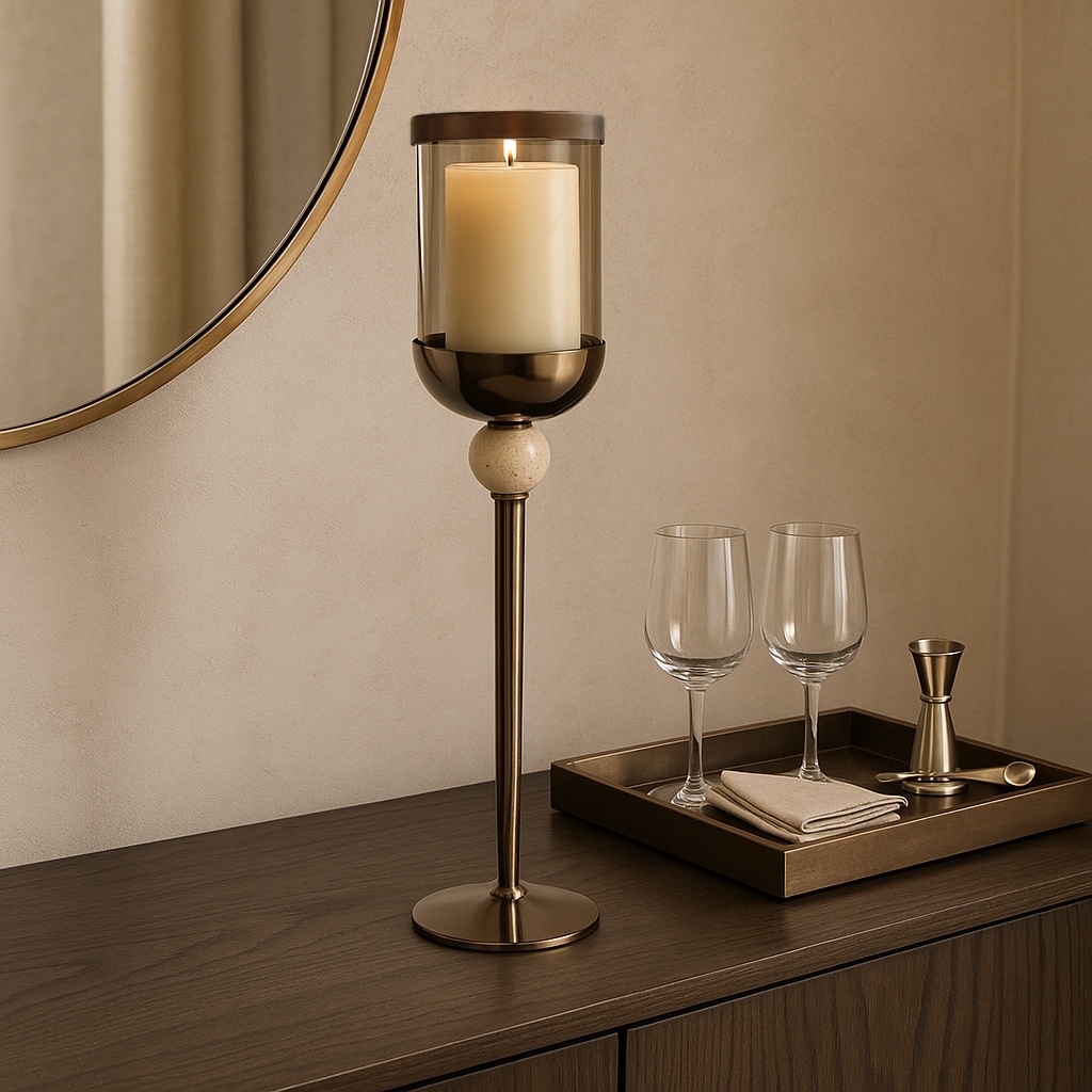 Metal Marble Floor Candle Holder Elegant Sculptural Hurricane