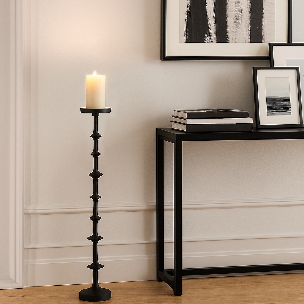 Black 36 in. Metal Abacus Floor Pillar Candle Holder
