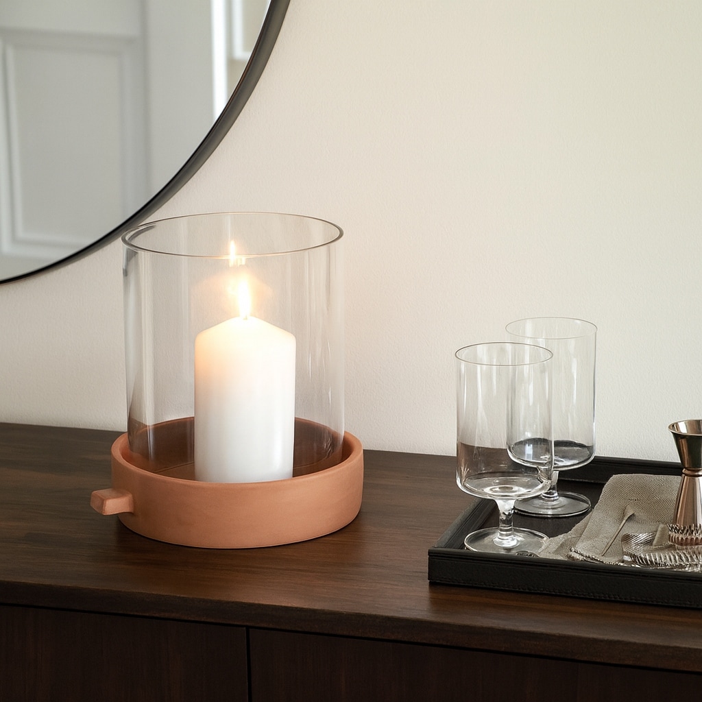 Modern Glass Hurricane Candle Holder with Terracotta Base - 10"