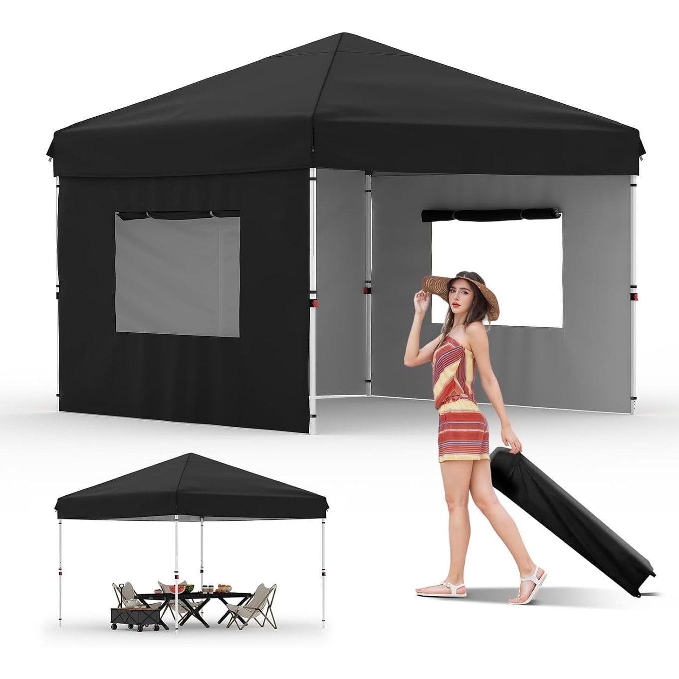 10'x10' Pop-Up Canopy Tent with 3 Sidewalls, Black