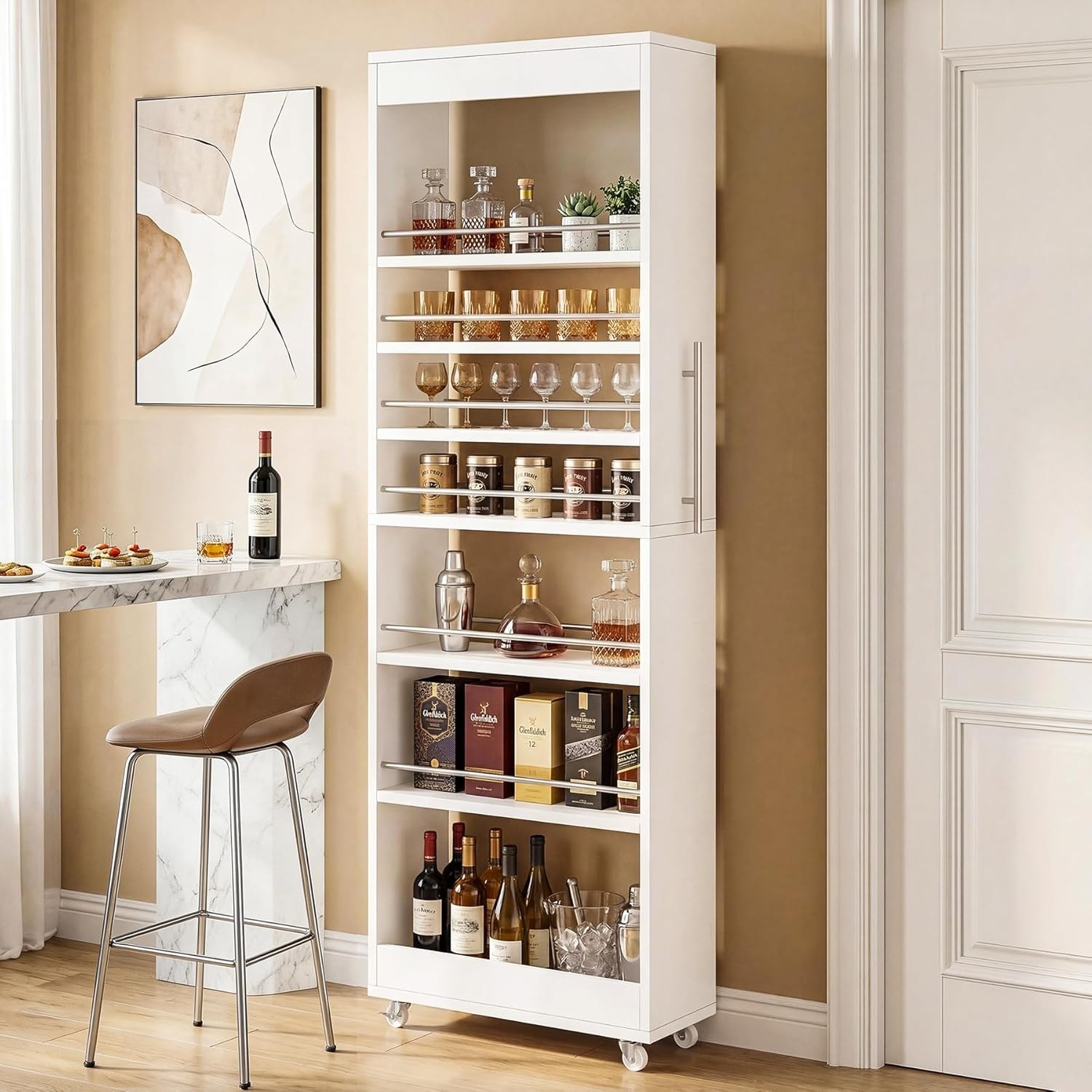 73" Tall Slim Kitchen Cart with Wheels, 7-Tier Narrow Storage Pantry Cabinet, Rolling Rack Organizer - 7.87"D x 21.65"W x 73"H