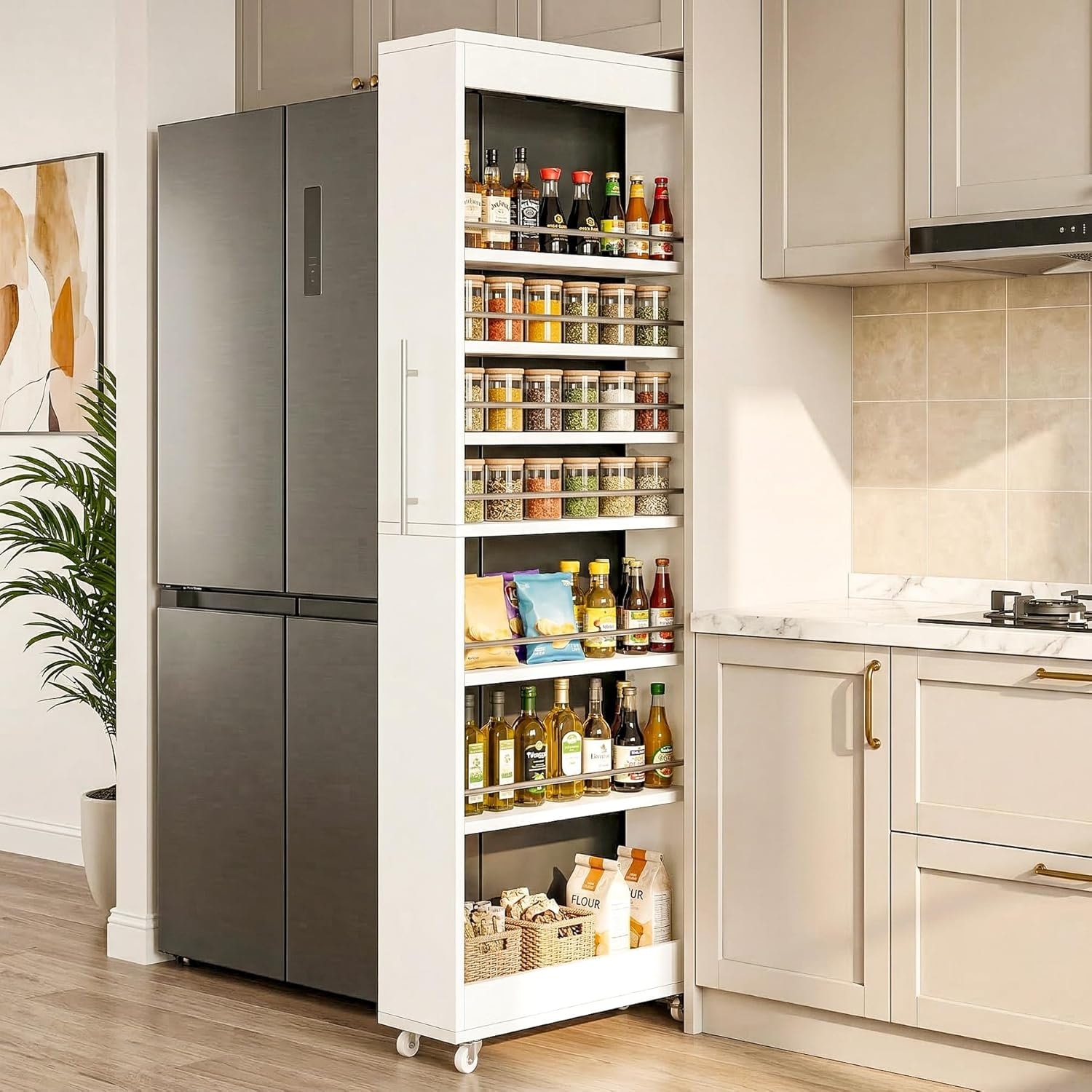 73'' Tall Slim Storage Cart on Wheels, 7-Tier Rolling Skinny Spice Rack with Metal Handle, Pantry Open Shelf Organizer Cabinet