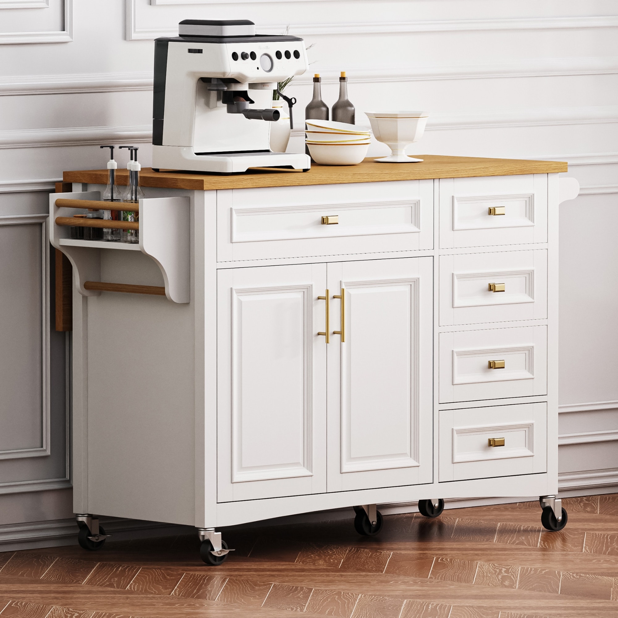 53 Inch Kitchen Island Cart with Thick Desktop Drawers Spice and Towel Racks