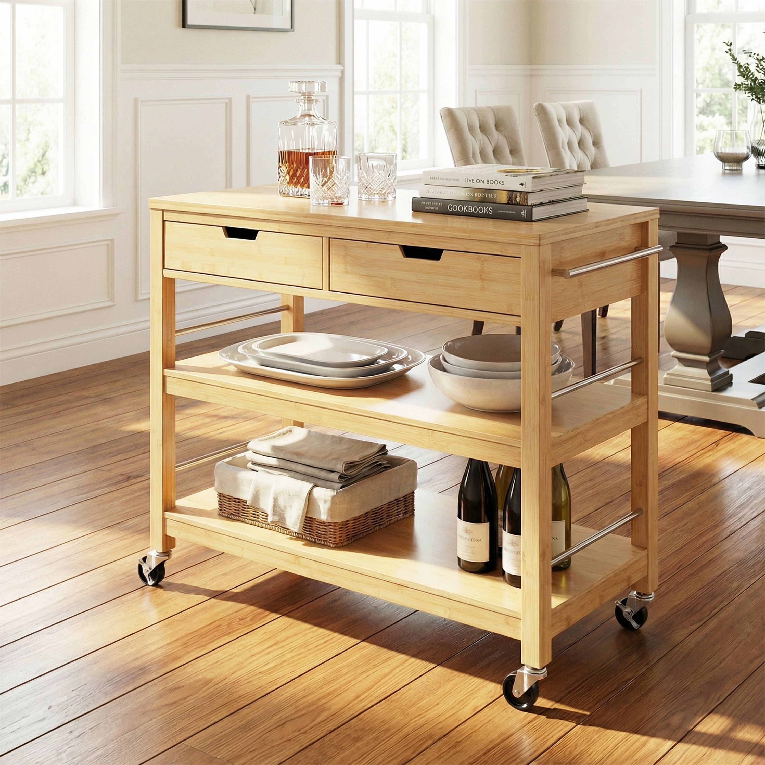 Christopher Knight Home - 50"W Bamboo Rolling Bar Cart with Drawers & Shelves