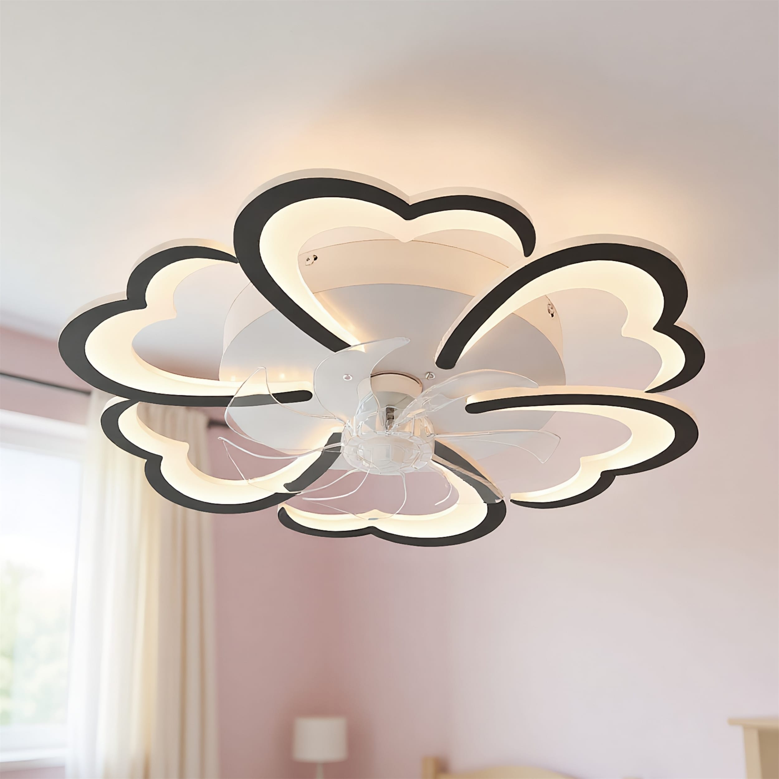 Modern Ceiling Fan with LED Light, APP & Remote, 7 Transparent Blades