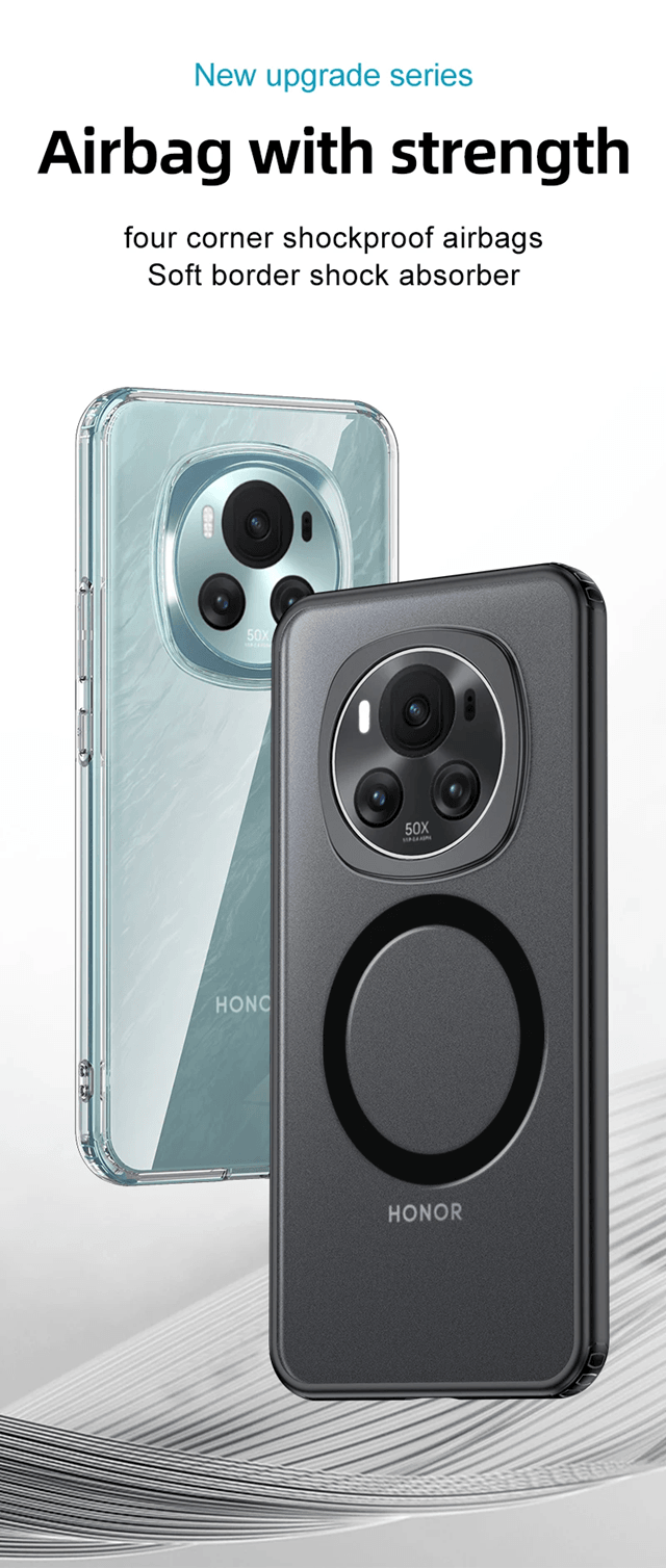 Rugged Magnetic Shockproof Case For Honor Magic 6 Pro Wireless Charging Armor Cover honor Magic 6 Pro black No Magnetic