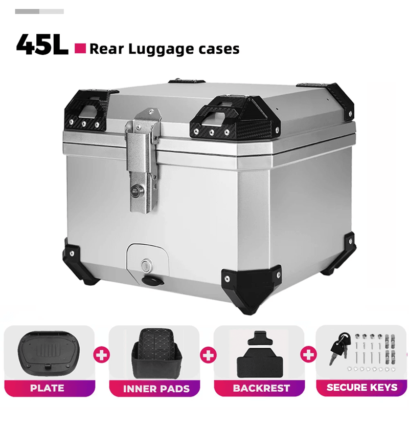 AdventureGuard 65L Universal Aluminum Motorcycle Top Case With Lock 45l Silver Box