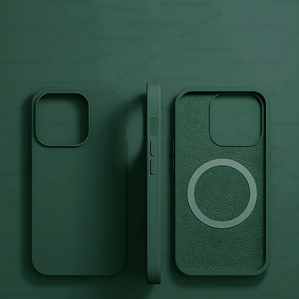 Magsafe Liquid Silicone Case For IPhone, Ultra Thin, Magnetic, Wireless Charging & Shockproof Cover dark Green iphone 16 Promax