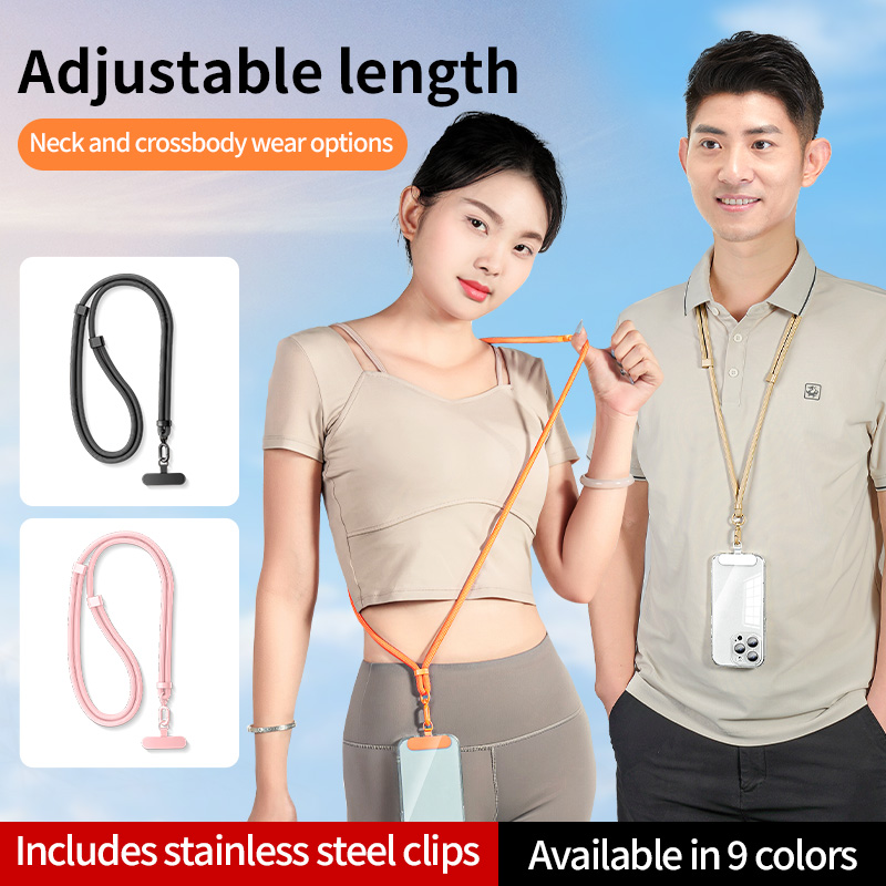 Adjustable Phone Lanyard Neck Cord, Universal Detachable Crossbody Strap With Card Clip For Mobile Phone Case, Outdoor orange nylon Spandex