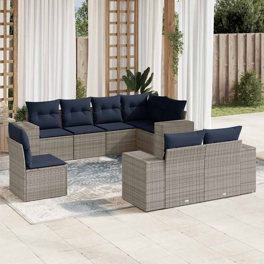 vidaXL 8/9 Piece Patio Sofa Set with Cushions Black/Brown/Gray Poly Rattan - 24.4 x 24.4 x 27.2