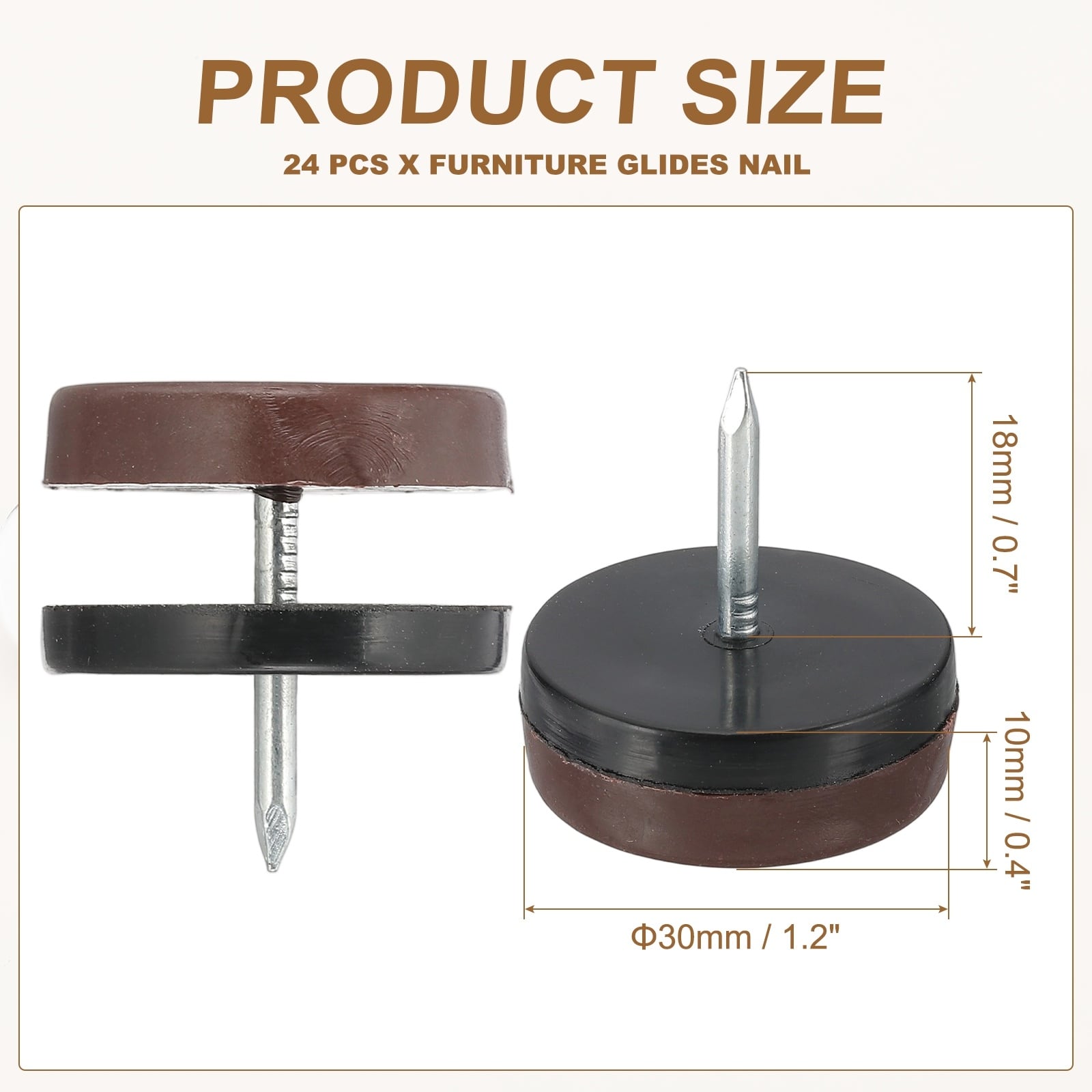 0.6" Dia Chair Slides 24 Pcs Nail on Furniture Glides Floor Protector, White