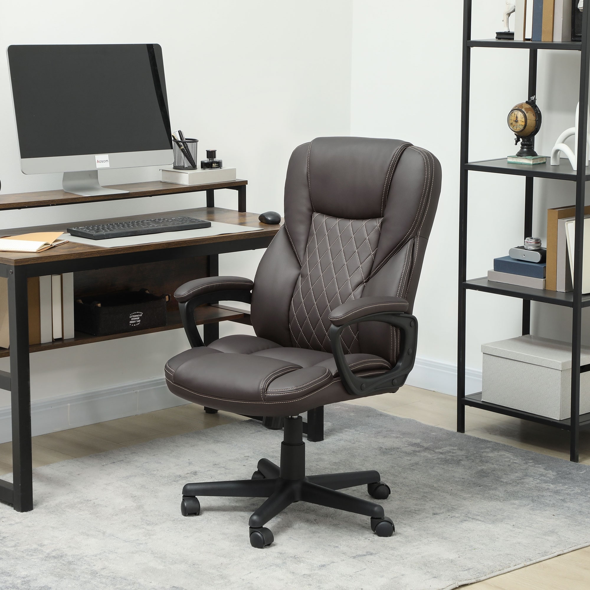 HOMCOM High Back Executive Office Chair, PU Leather Computer Desk Chair with Adjustable Height, Padded Armrests