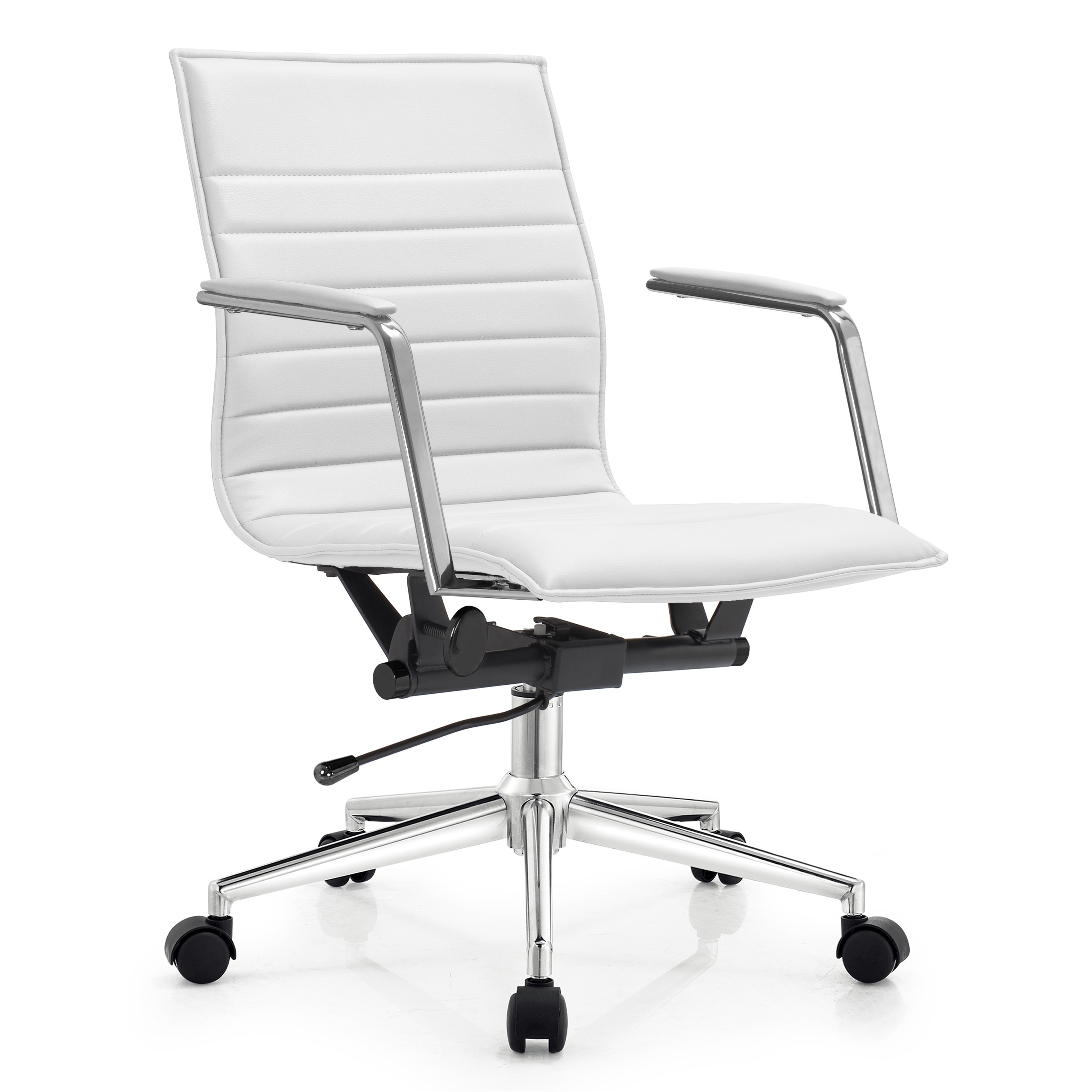 Modern Office Desk Chair | Upholstered PU Leather Ribbed Mid Back with Metal Frame | Adjustable Height, Tilt Lock