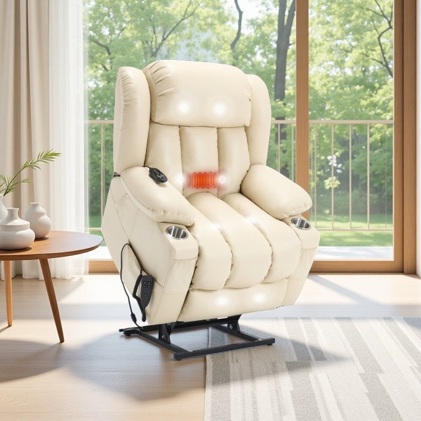 Leatherair Power Lift Recliner Chair with Dual Motor, 8-Point Vibration Massage, Lumbar Heating, Cup Holders & Side Pockets
