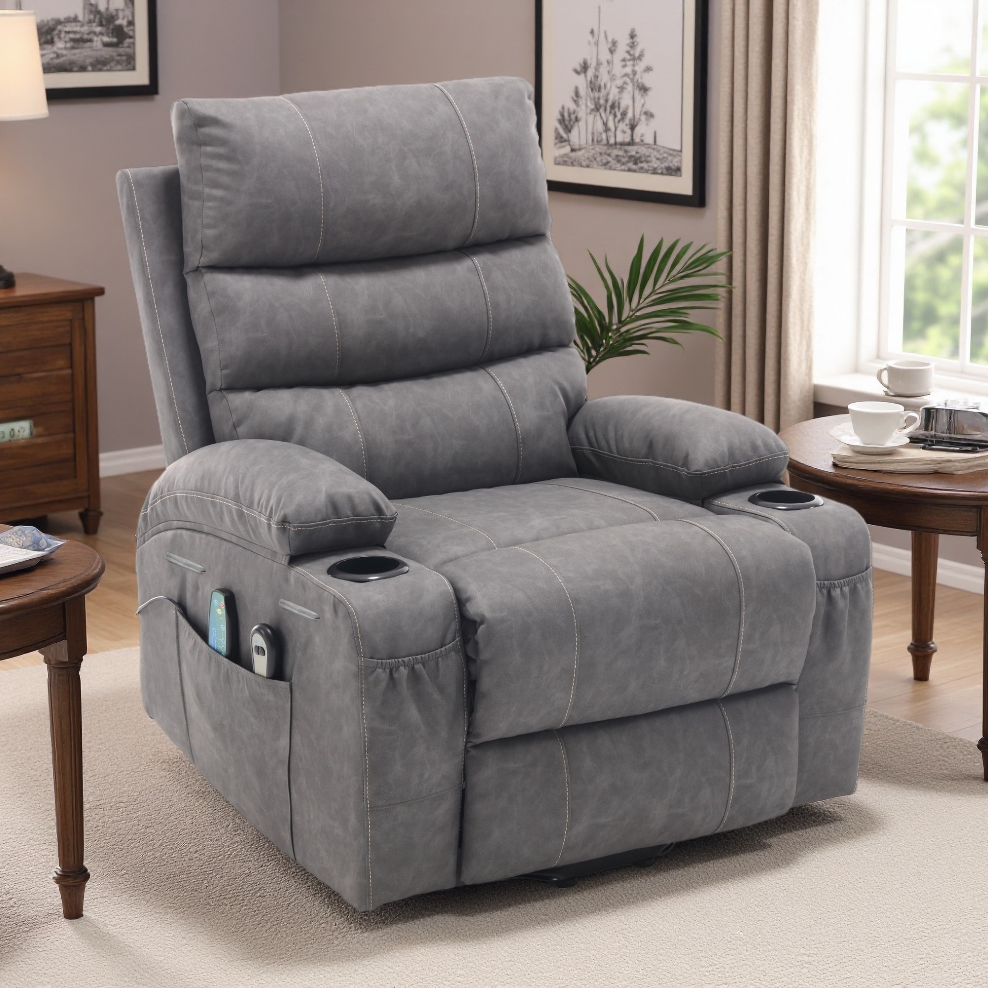 PU Leather Electric Power Lift Recliner Chair for Elderly with Vibration Massage, Lumbar Heat, Cup Holders & Side Pocket