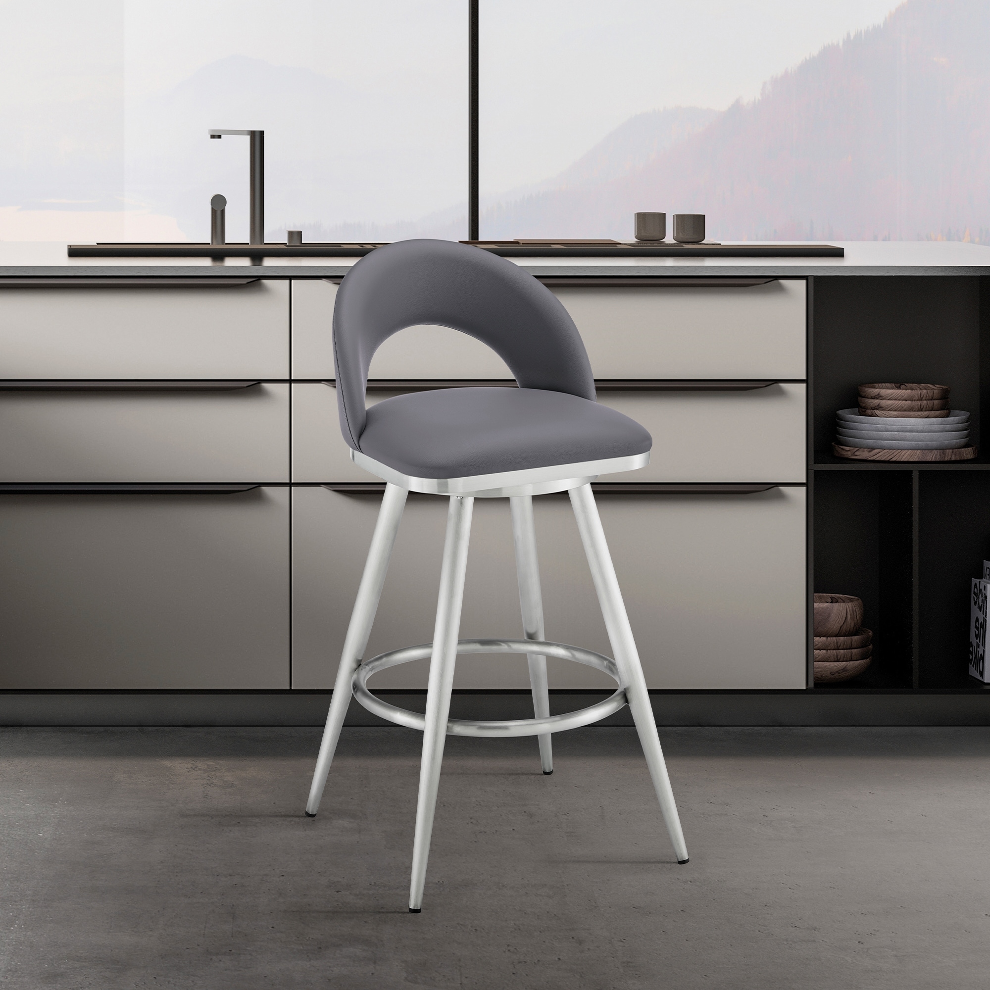Charlotte 30" Swivel Bar Stool in Brushed Stainless Steel with Black Faux Leather